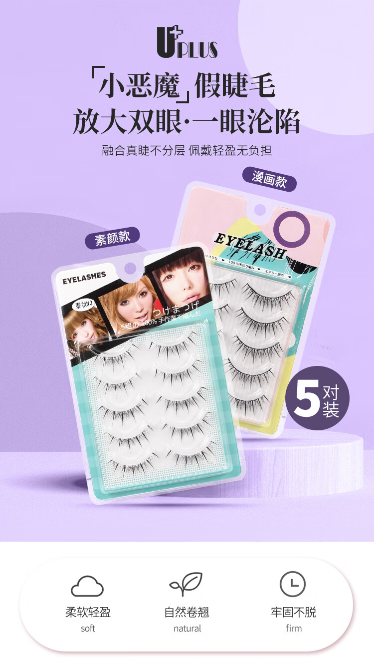 UPLUS false eyelashes whole cluster comic little devil one piece eyelashes whole hard stalk natural simulation 5 pairs M09