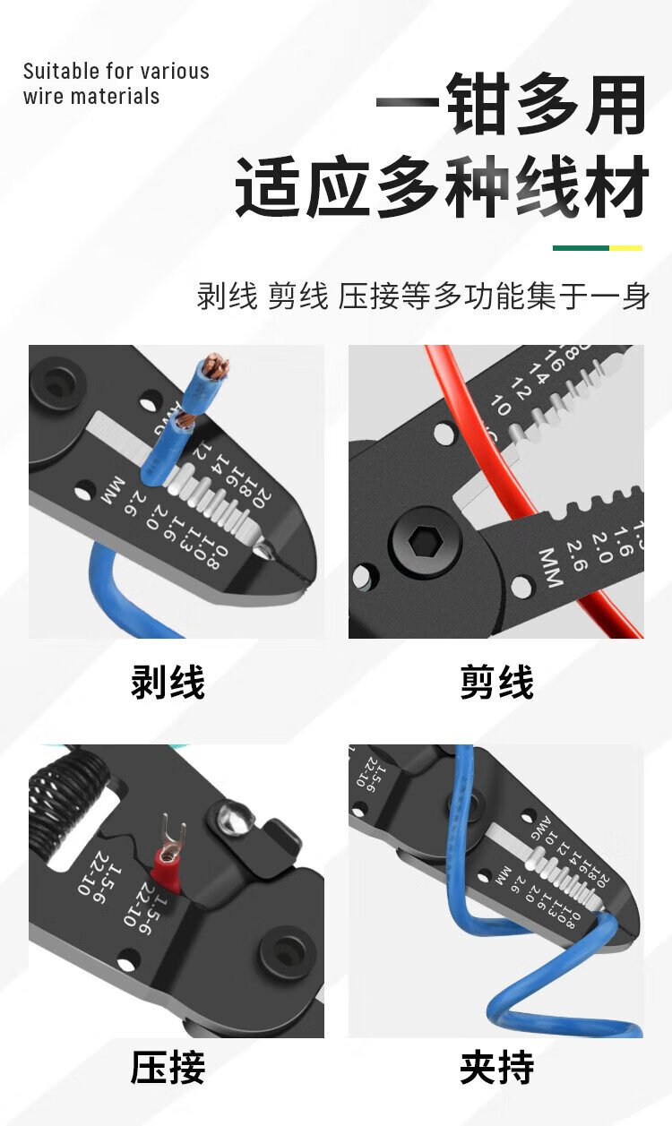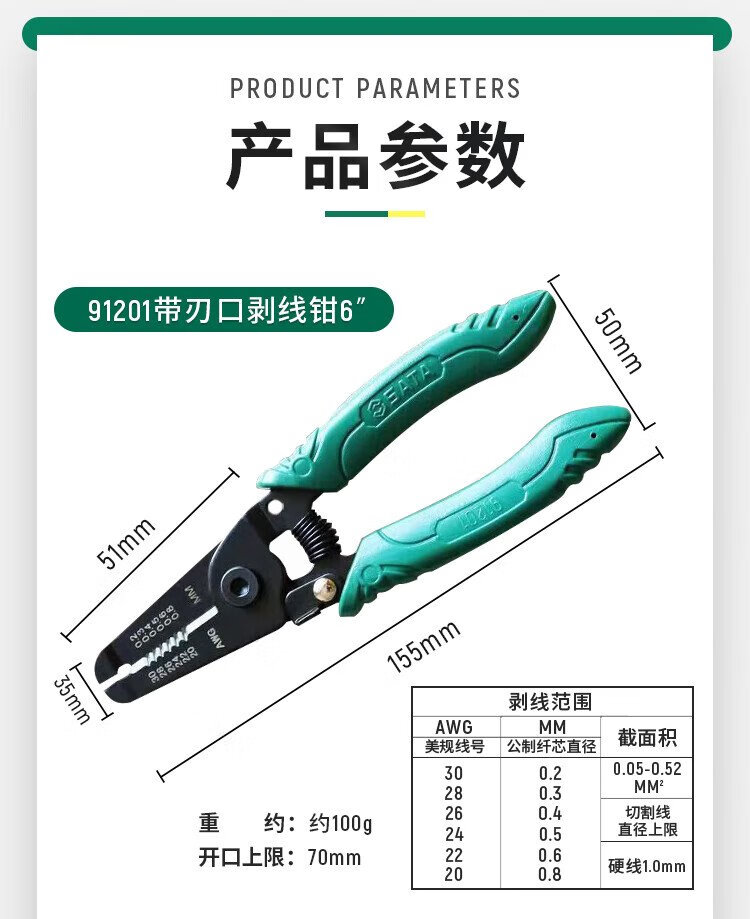 SATA 91201 Bladed Wire Strippers 6 Electrician Wire Crimping Pliers Wire Cutting Pliers Splitter 0.05-0.52MM