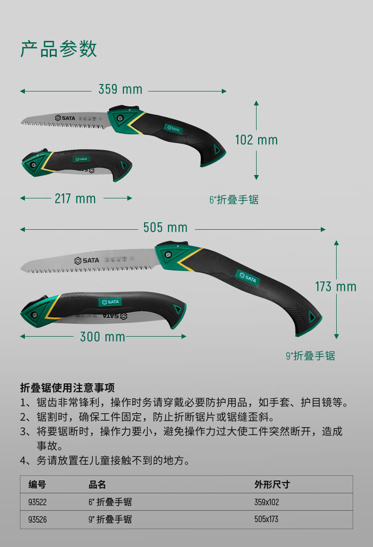 SATA 93526 folding hand saw, garden saw, fruit tree saw, large garden tool hand saw 9 inches