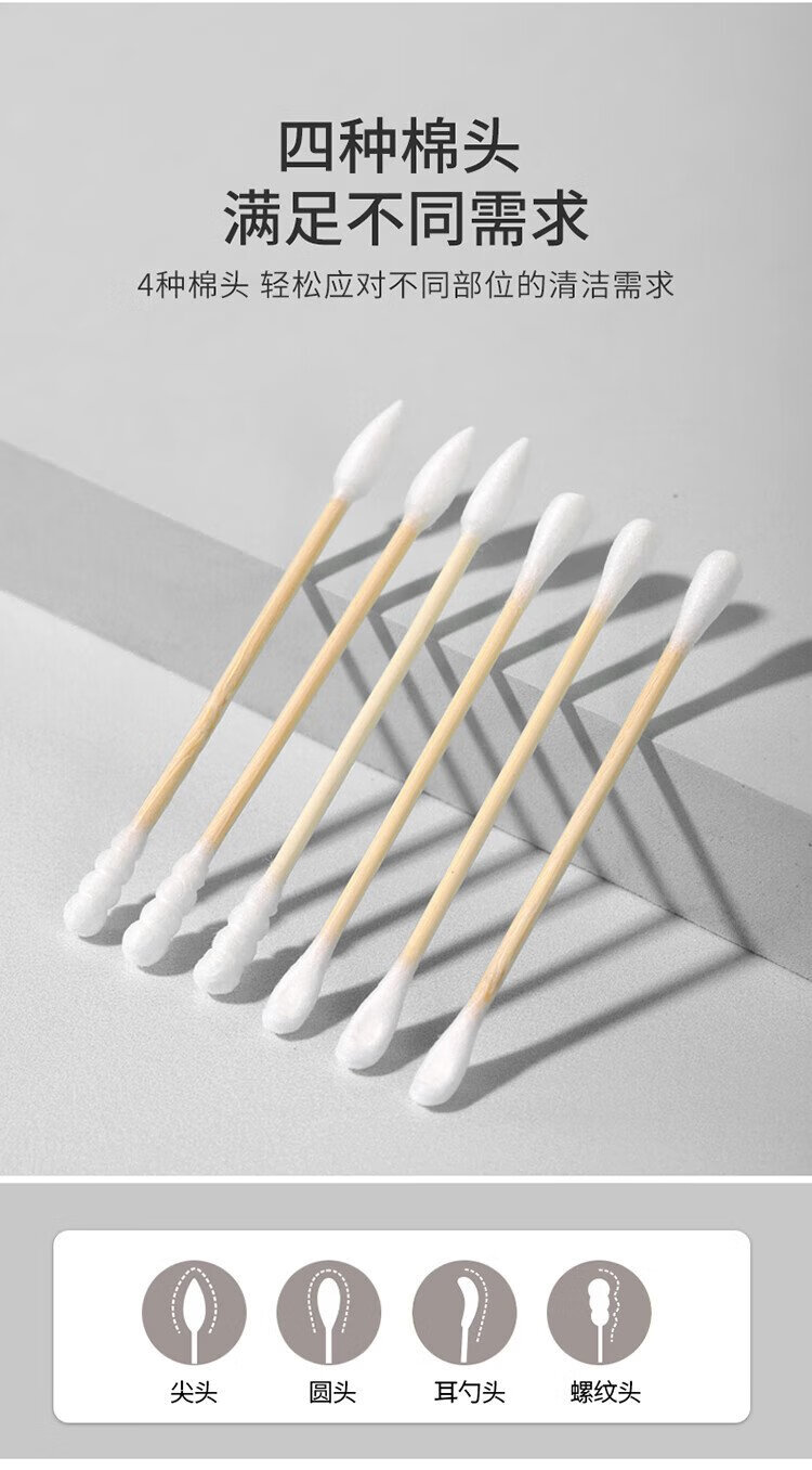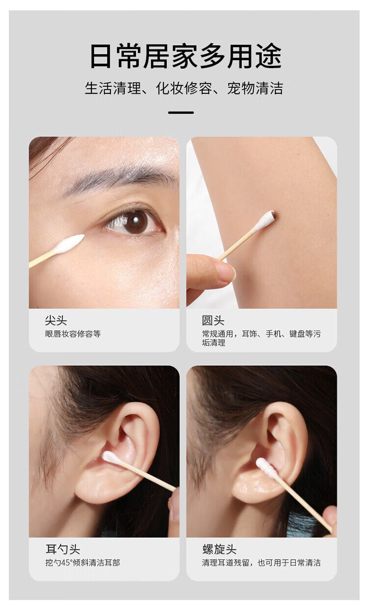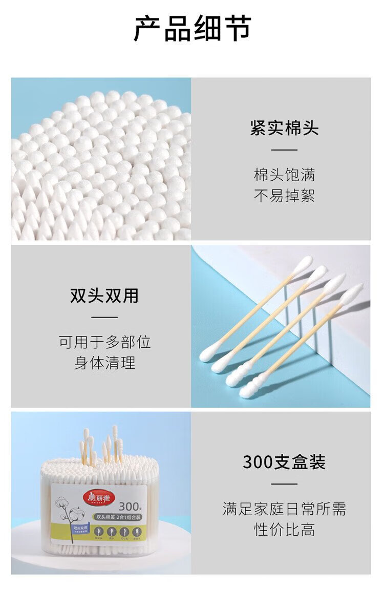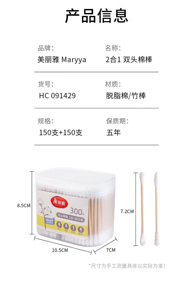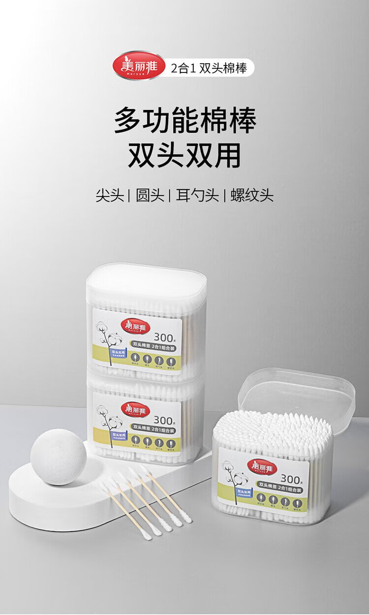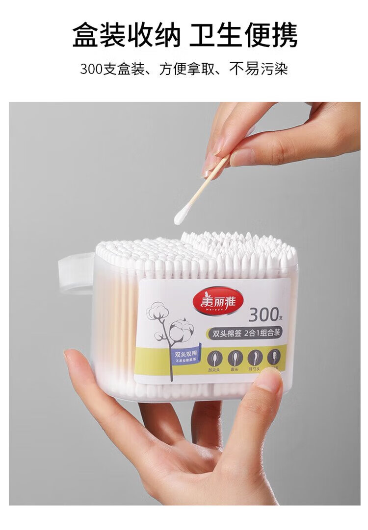 Meiya double-headed cotton swabs 300 pieces boxed ear-picking makeup pointed round head spiral cleaning multi-functional ear-picking spoon cotton swab stick
