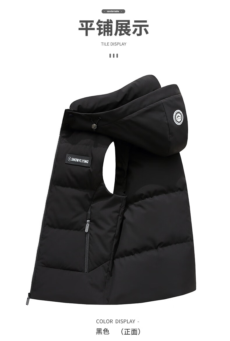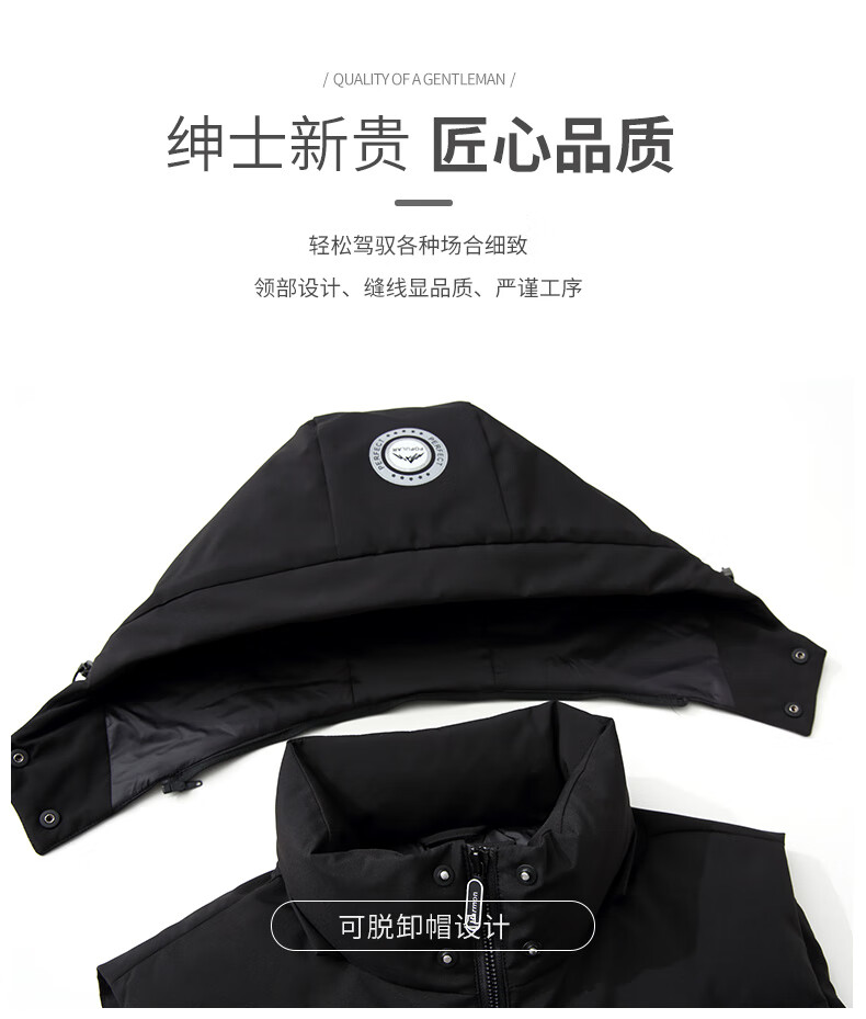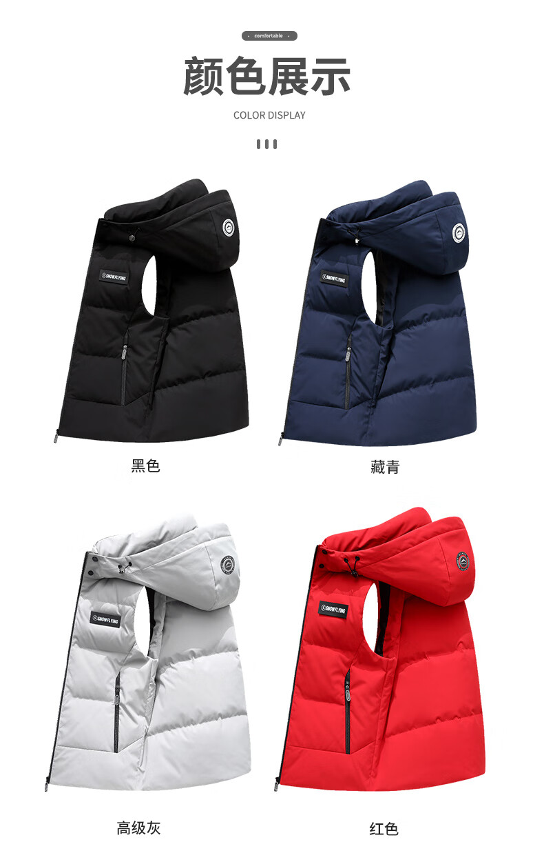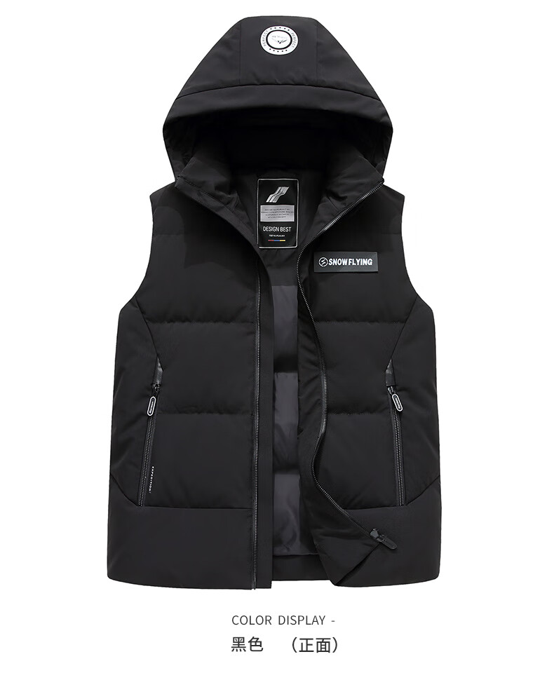 Flying in the Snow Down Jacket Vest Men's Cold-proof Autumn and Winter Thick Warm Removable Hat Short Fashion Casual Vest 180