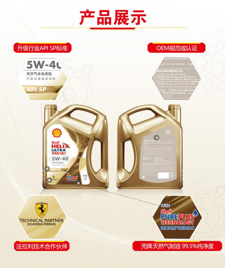Shell Helix Ultra Ultra Fully Synthetic Motor Oil 5W-40 API SP 4L