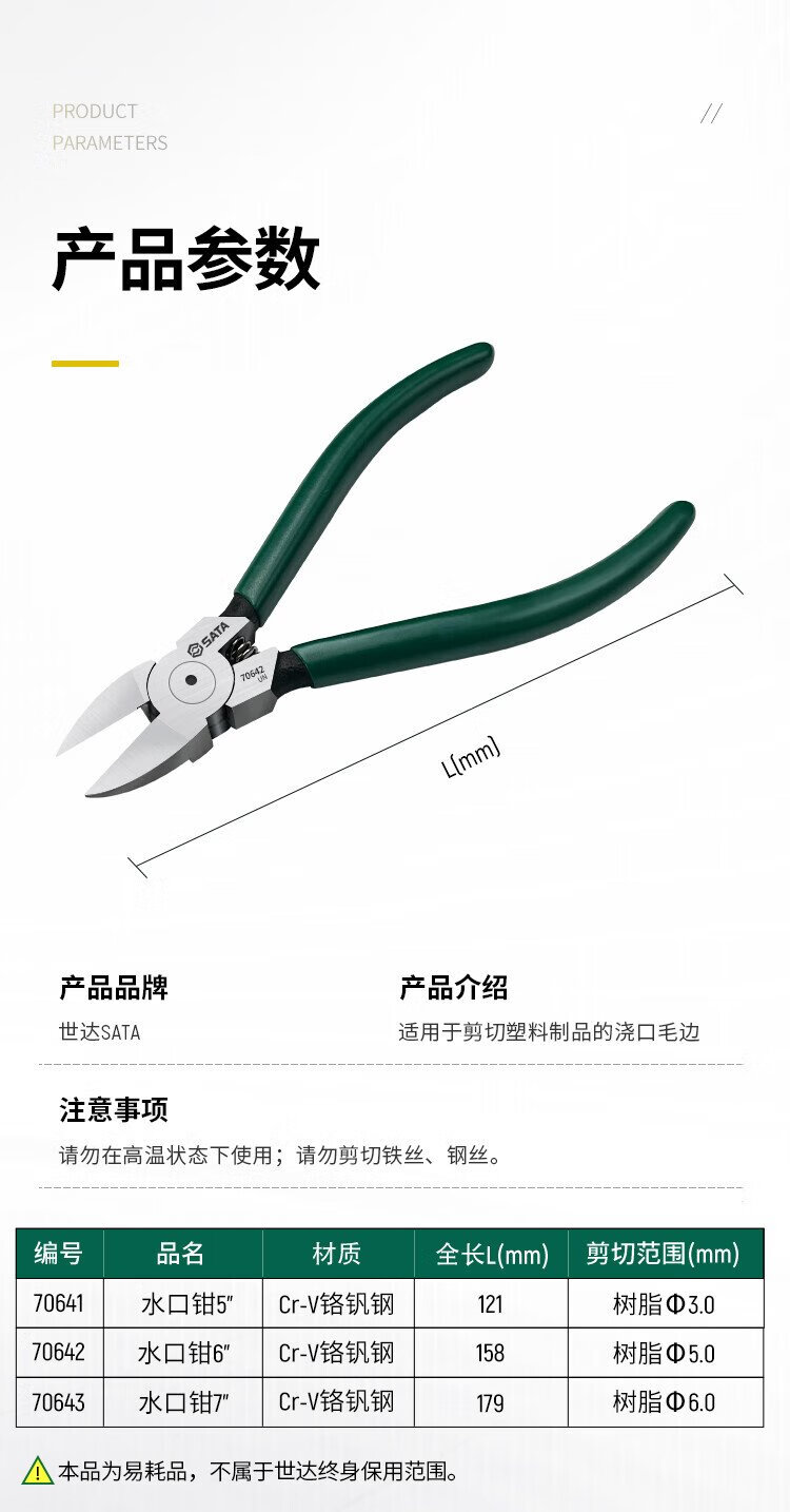 SATA plastic nozzle pliers 7 plastic scissors resin diagonal pliers offset pliers 70643