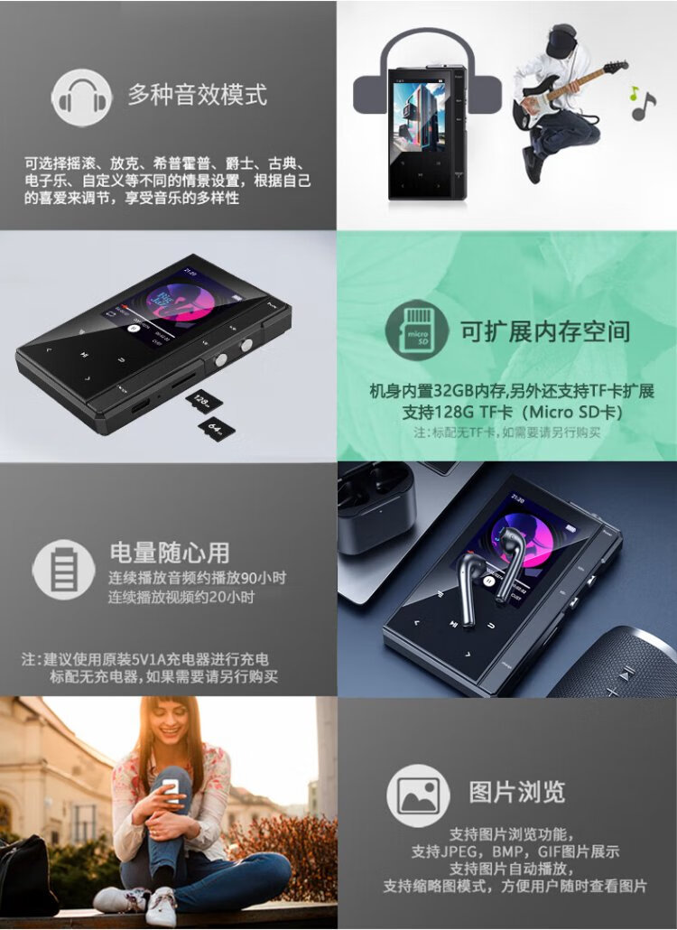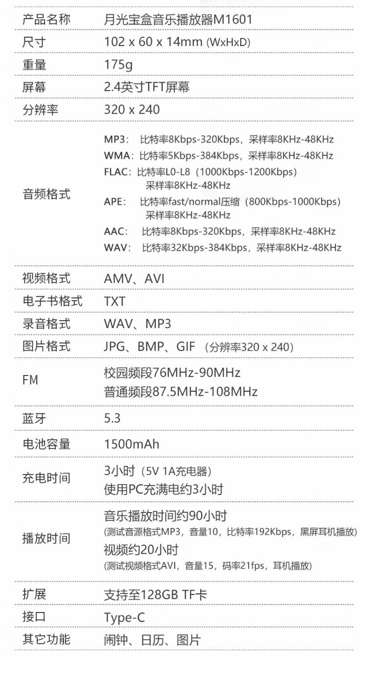Moonlight Box mp3/mp4 player M1601 32G Bluetooth external plug-in card for listening to songs, lossless music e-book, super long standby English listening machine, walkman, students only