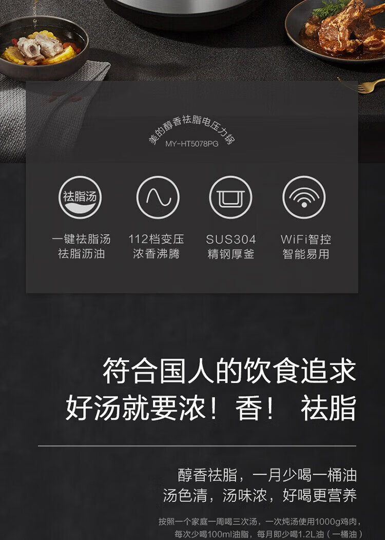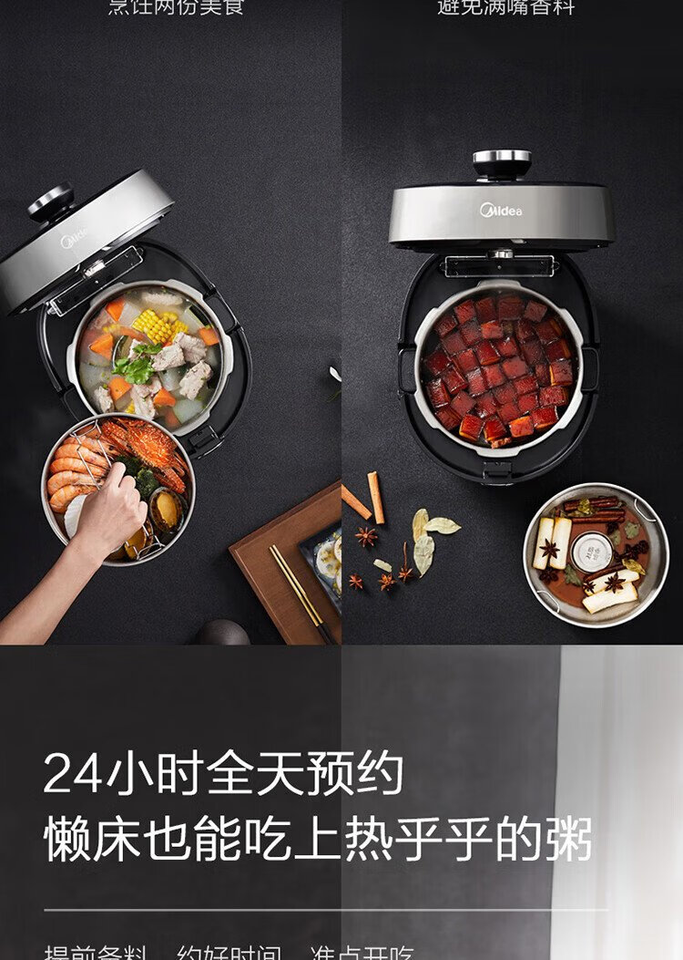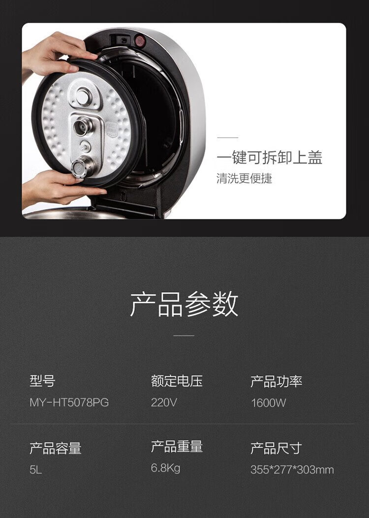Midea (Midea) same model electric pressure cooker 5L household fat and oil removal IH smart double pot fully automatic multi-function smart pressure rice cooker MY-HT5078PG