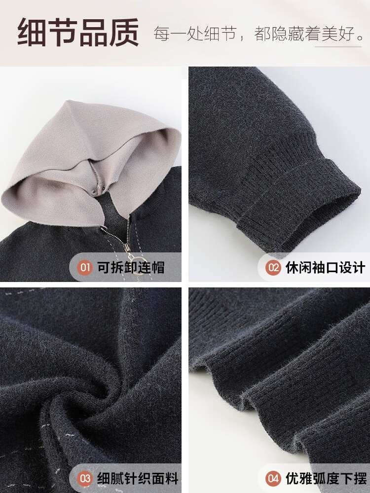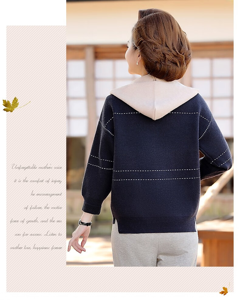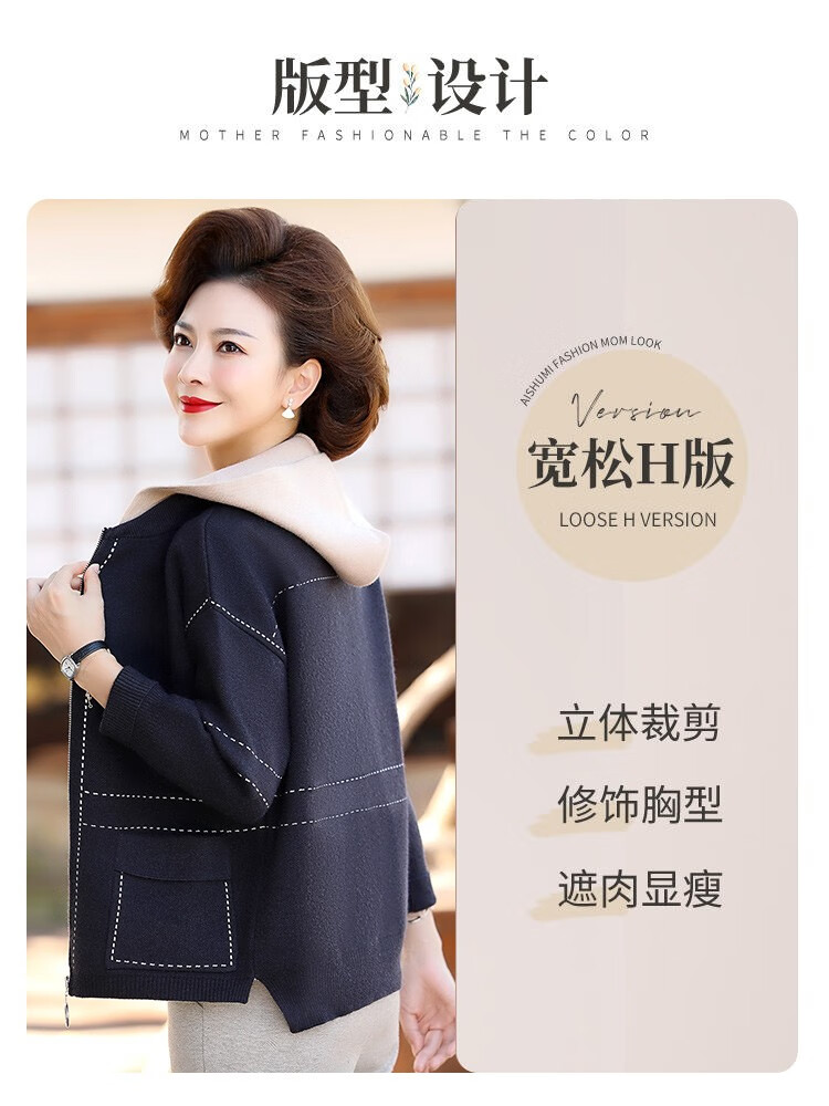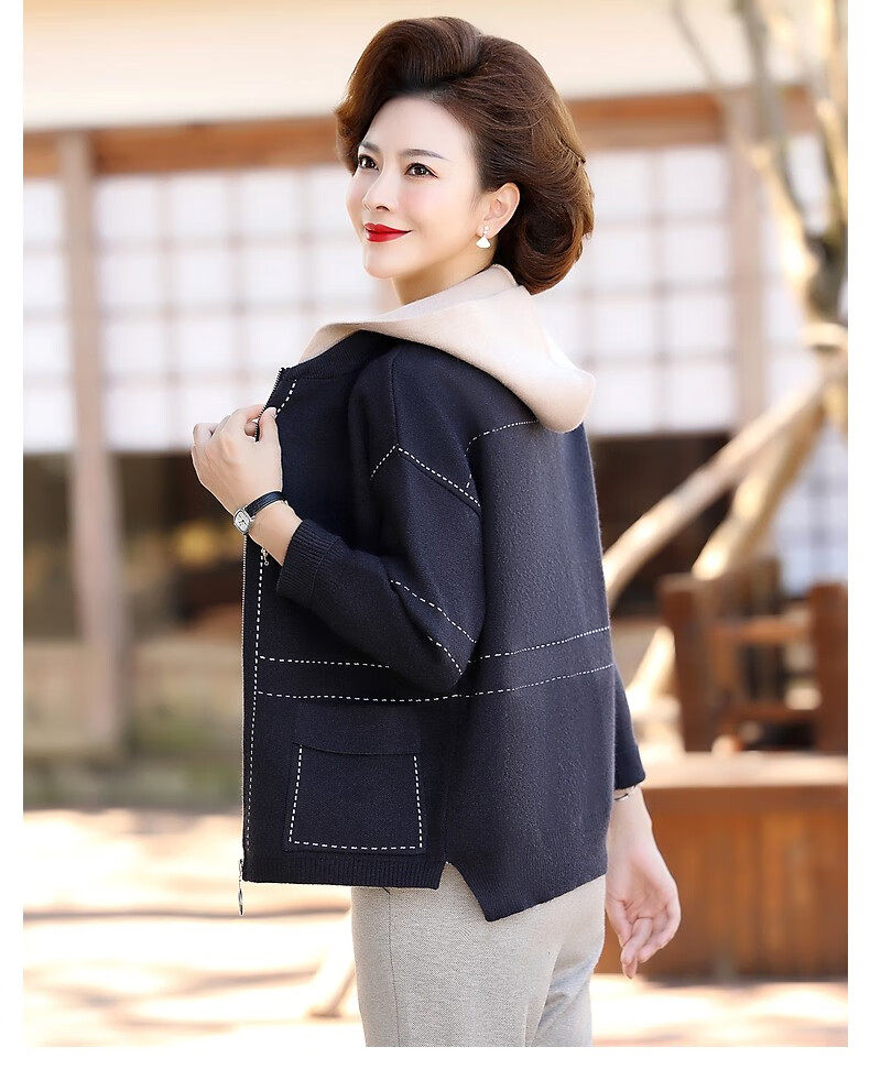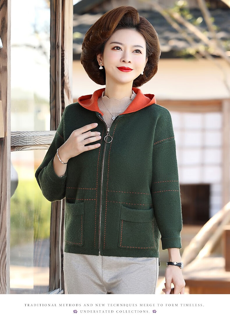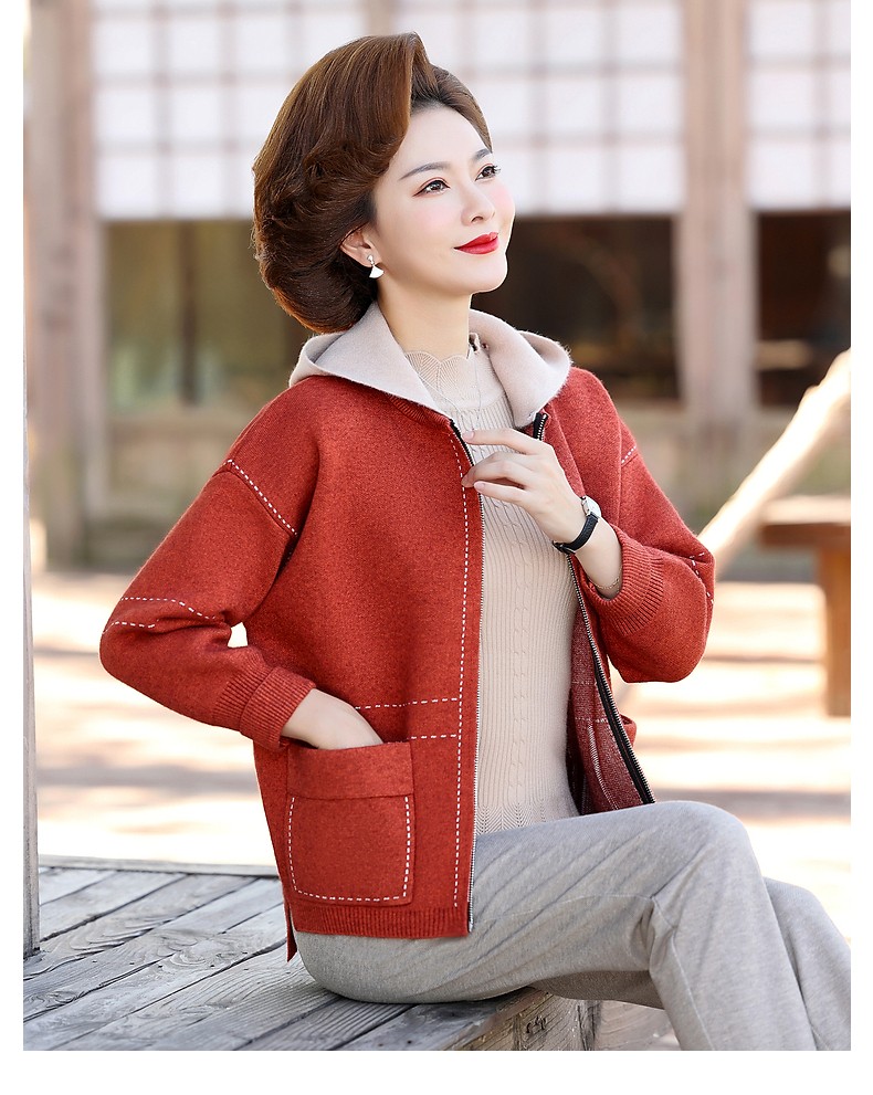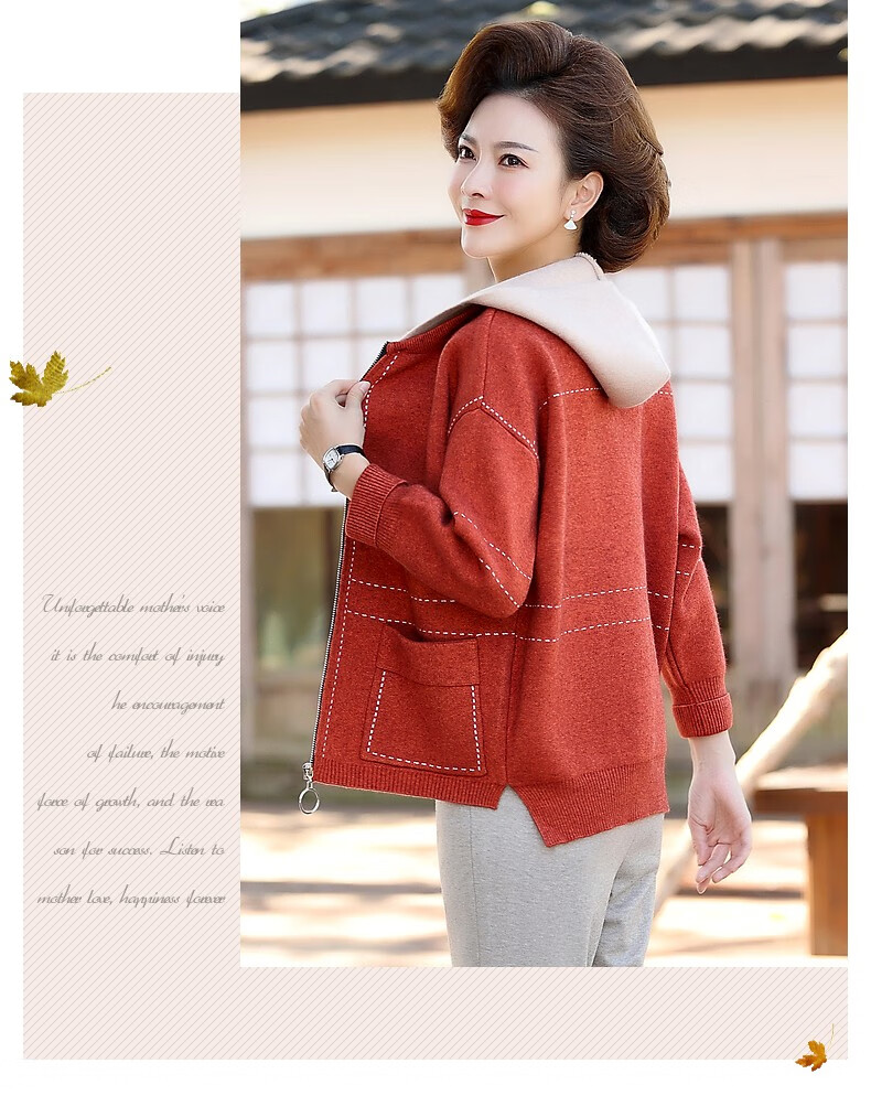Hengyuanxiang middle-aged mother's clothing, autumn style, short knitted jacket, middle-aged and elderly women's clothing, spring and autumn hooded noble cardigan top