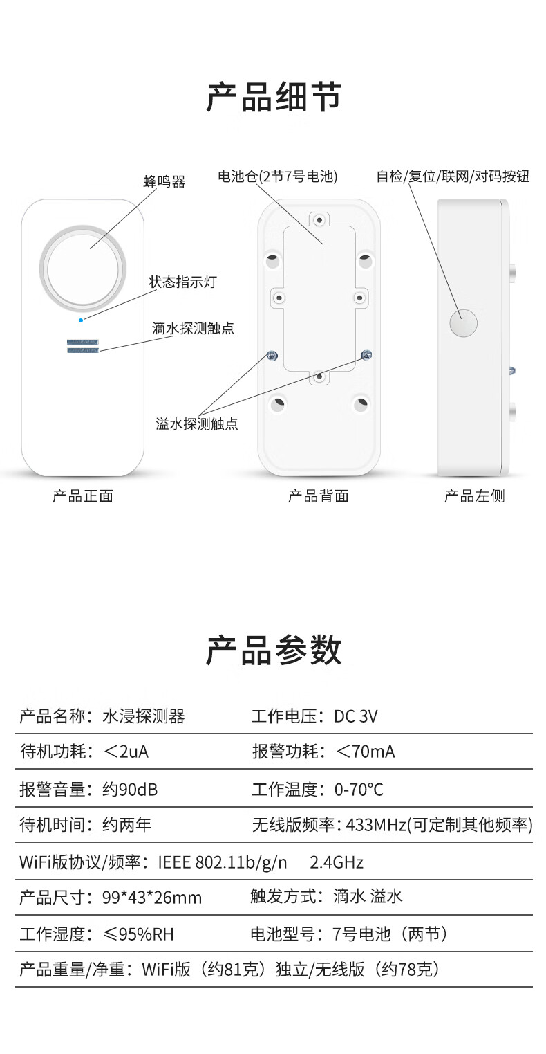 Bolian Smart does not require a gateway app to remotely notify the WIFI flood alarm sensor, water level, dripping water, leakage, full water, flood guard induction alarm