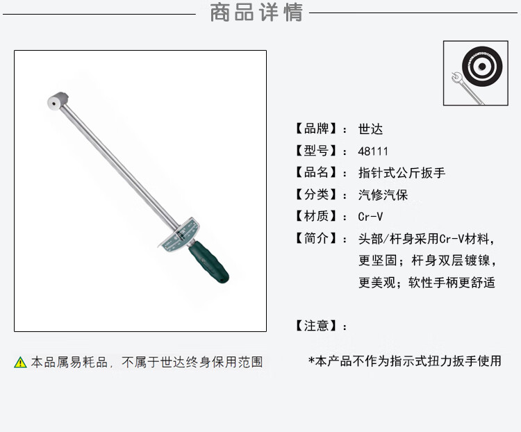 SATA 48111 Torque Wrench Pointer Type Kilogram Wrench 1/2 inch 0-300 (various specifications available)