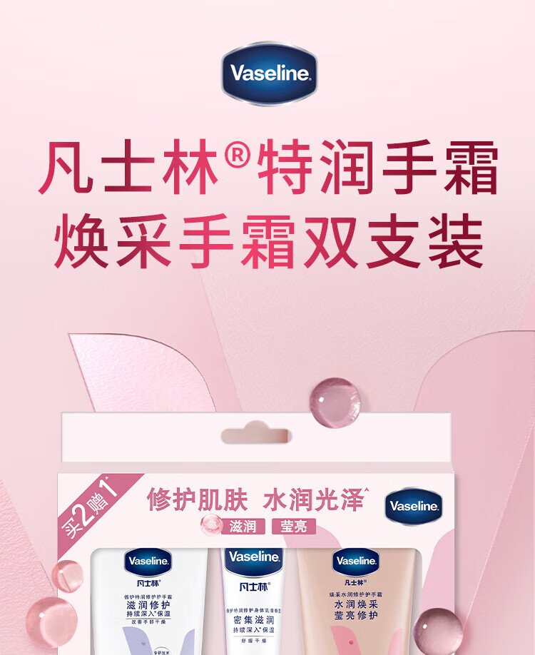 Vaseline Hand Cream Set 50mlx2+30ml Special Repair + Brightening Moisturizing Long-lasting Fragrance