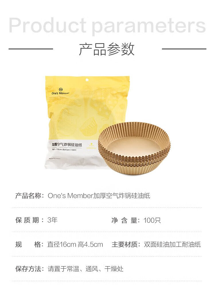 One s Member air fryer paper thickened 50gsm food grade material bottom diameter 16cm*100 pieces