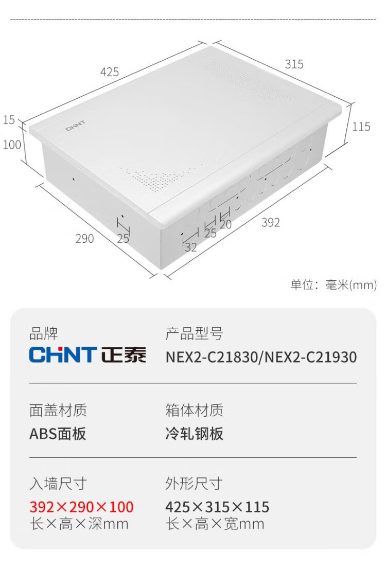 Chint (CHNT) NEX2-C21630 weak current box concealed network fiber optic home distribution box multimedia module decorative wiring information box