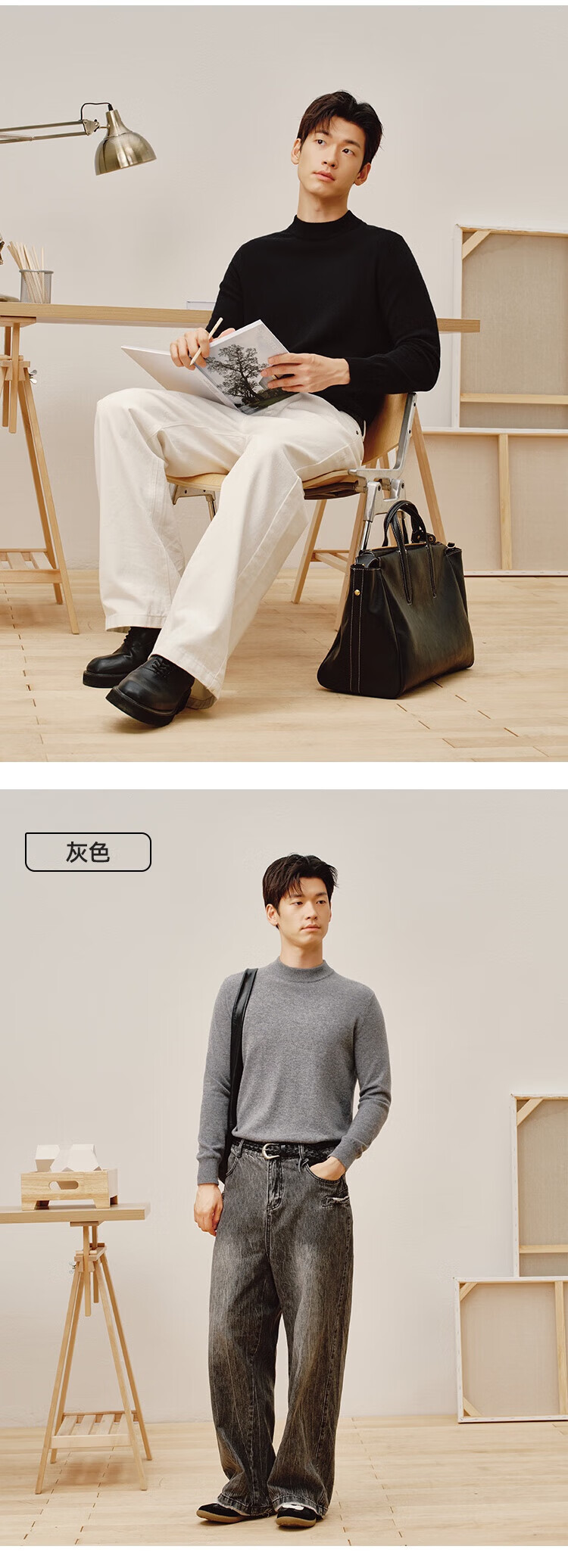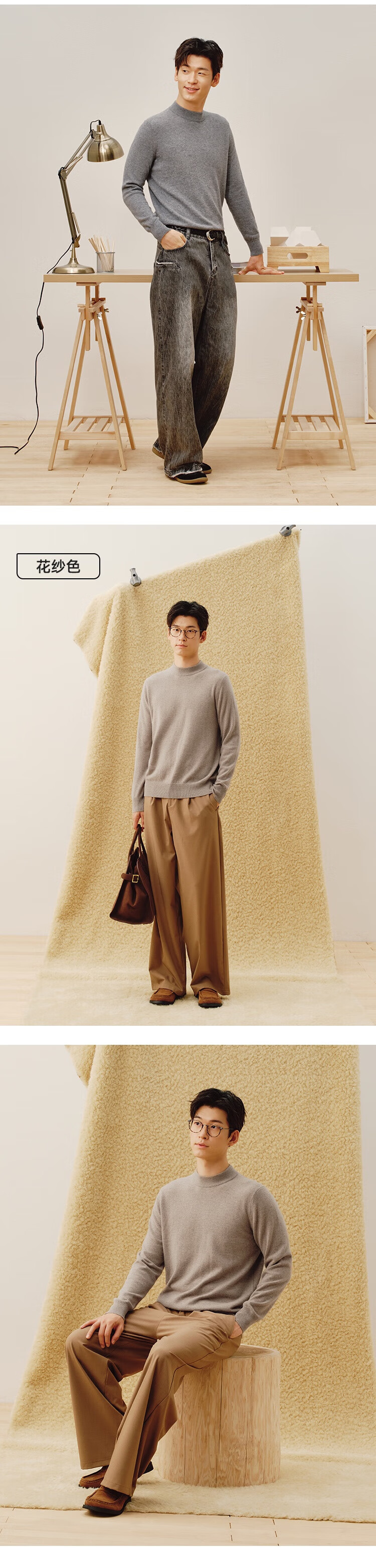 Made in Tokyo, pure cashmere, cashmere sweater, sweater, men's autumn and winter gift box, gray XL