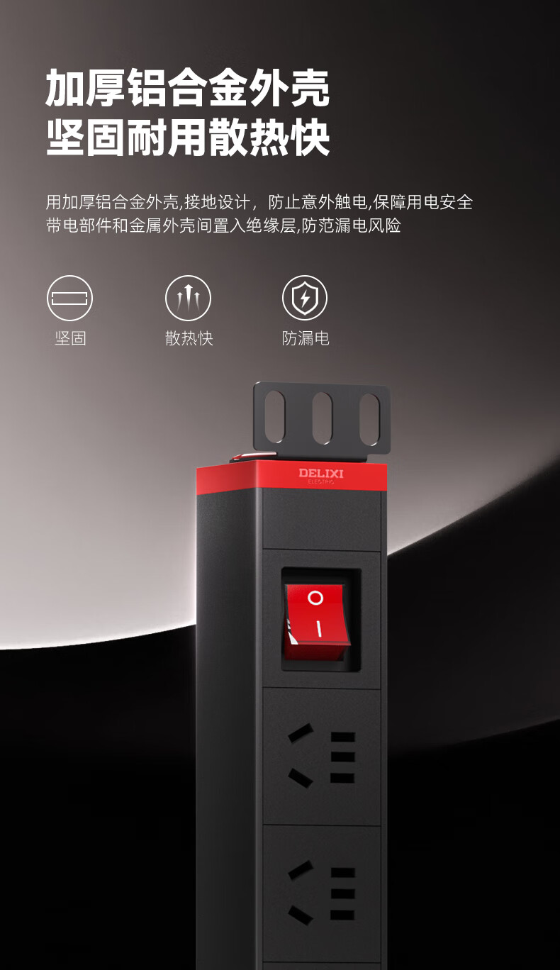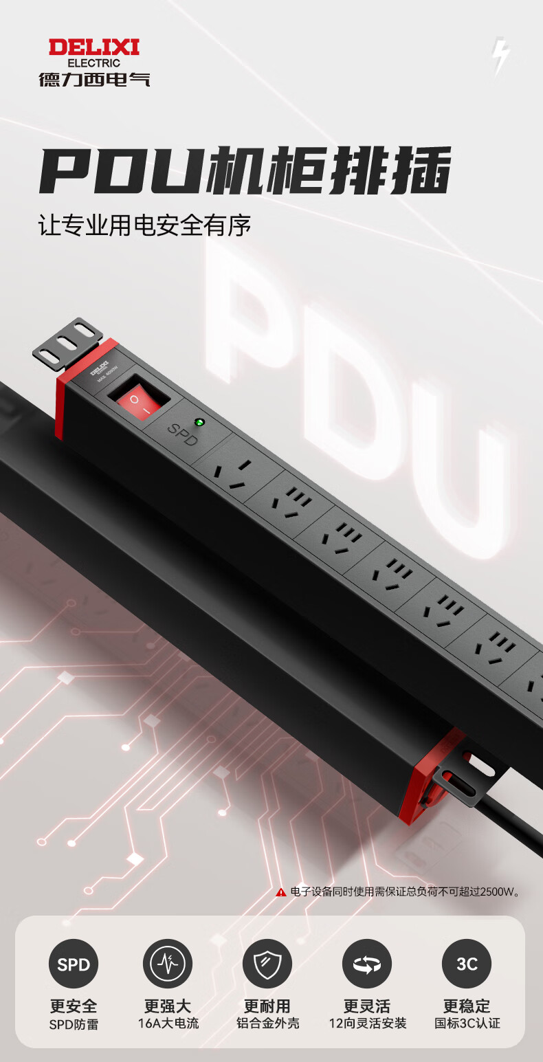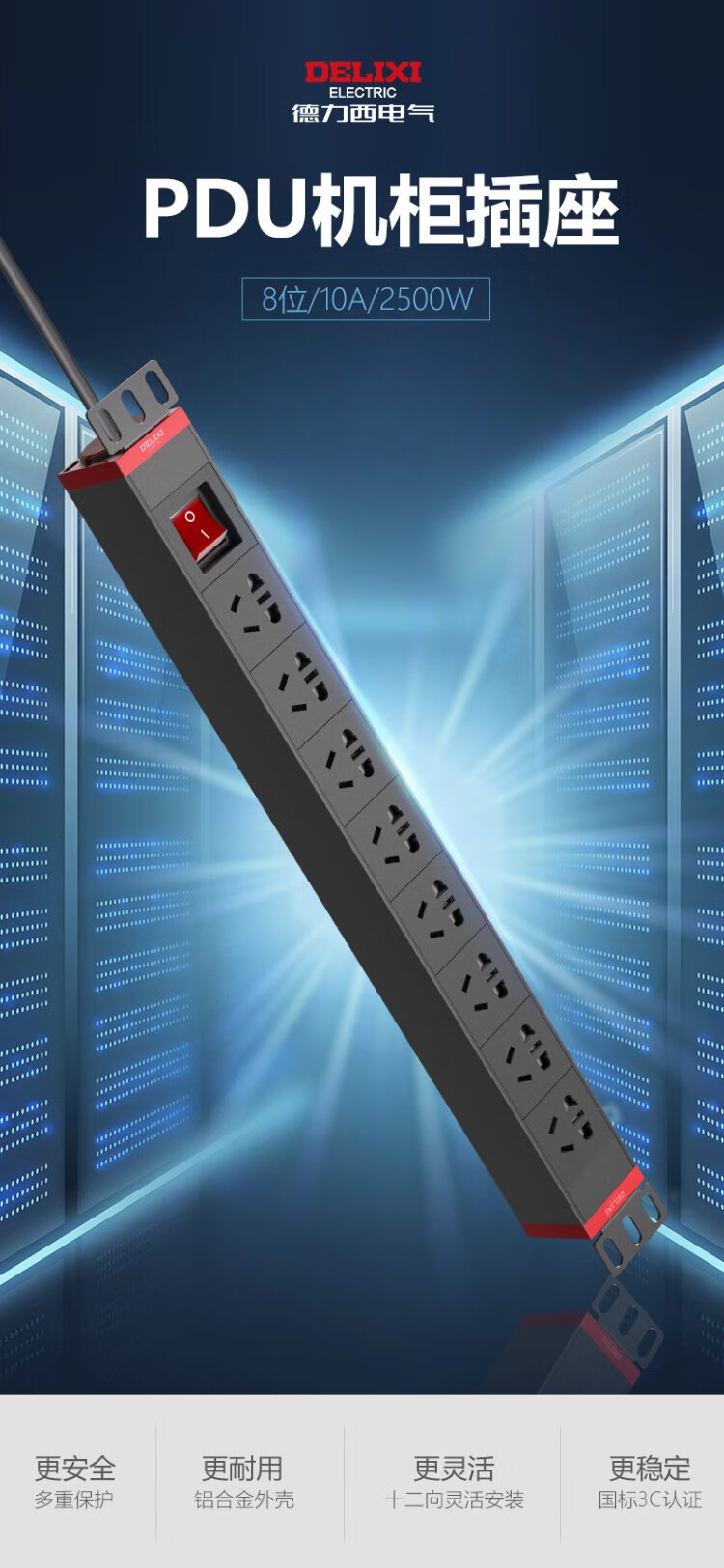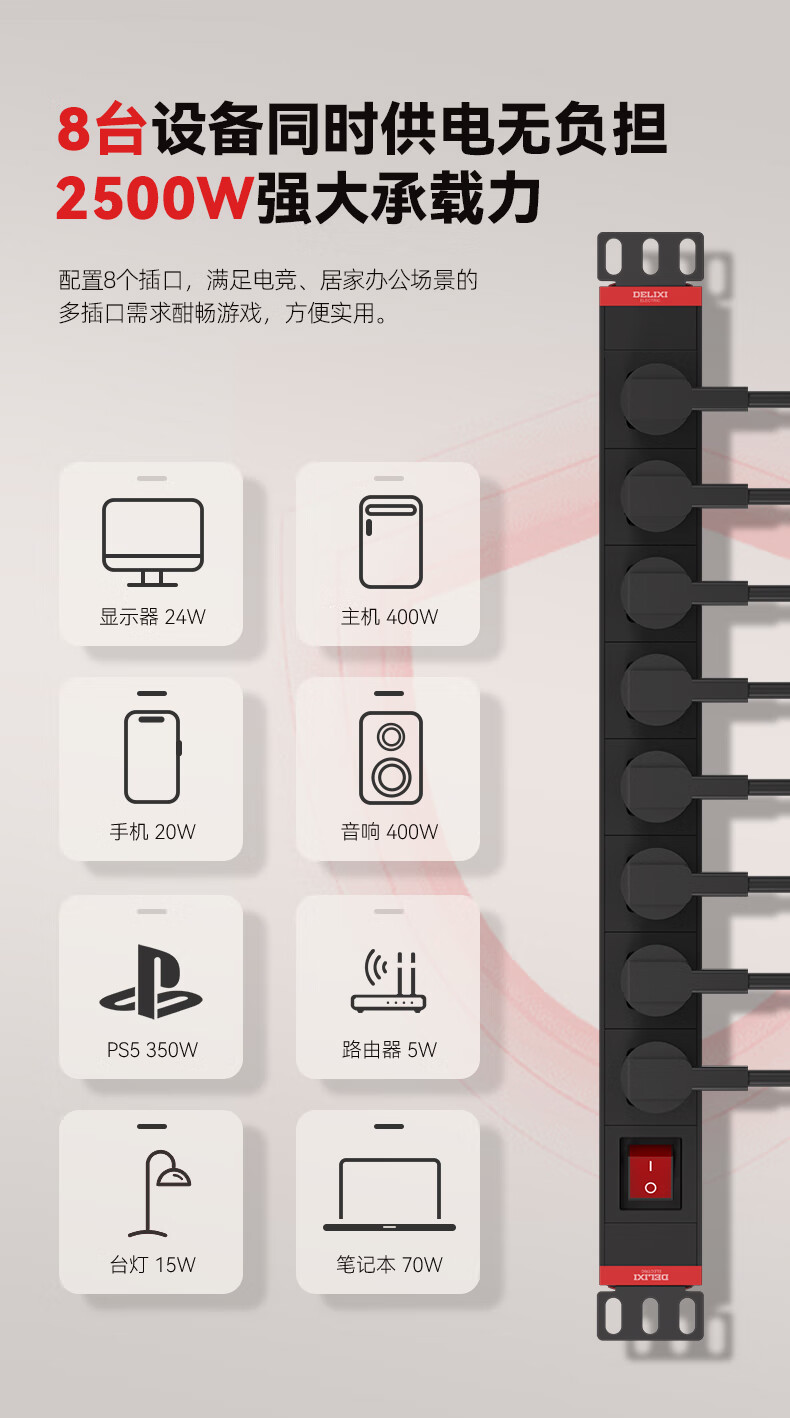 德力西(DELIXI)PDU机柜桌面电竞插座/插线板/插排/排插/接线板/拖线板 8位总控开关全长1.8米