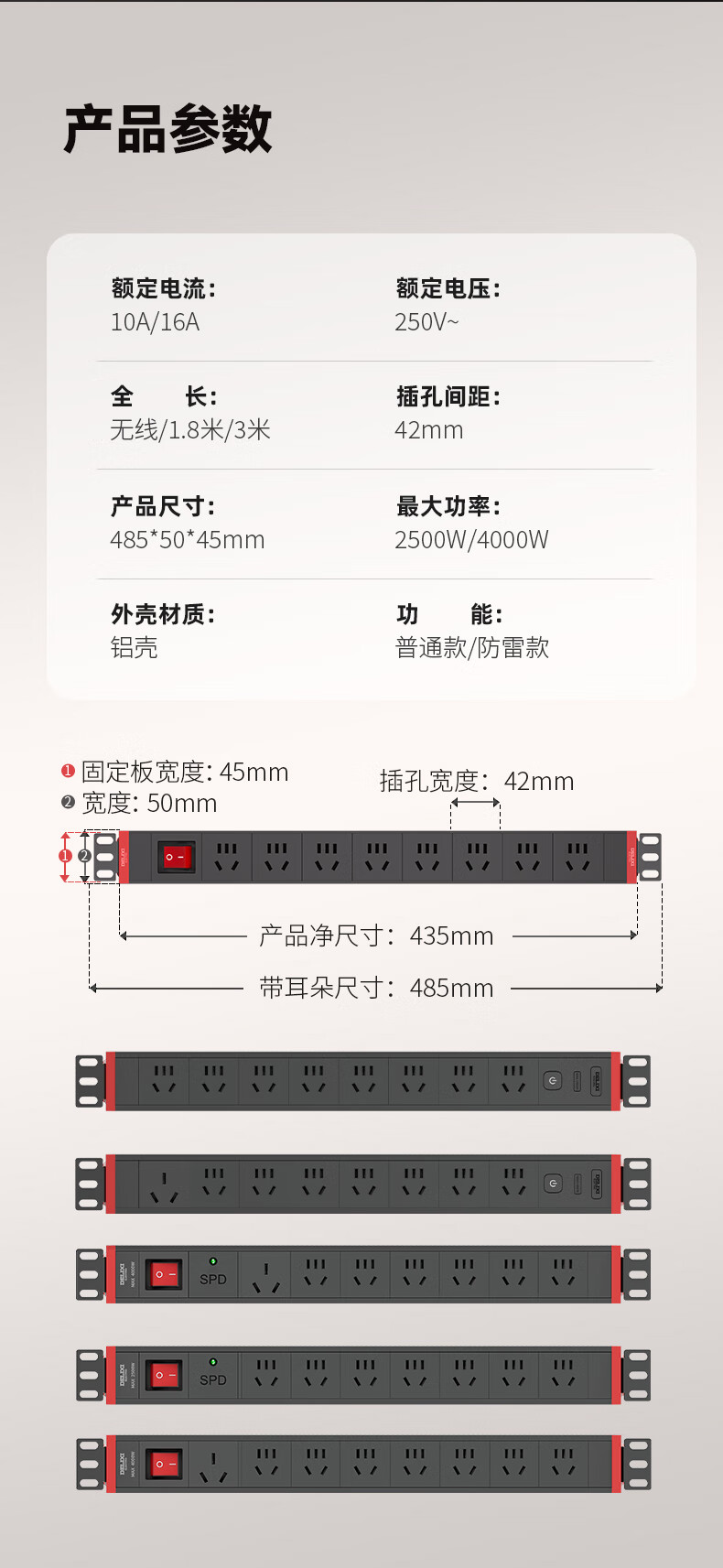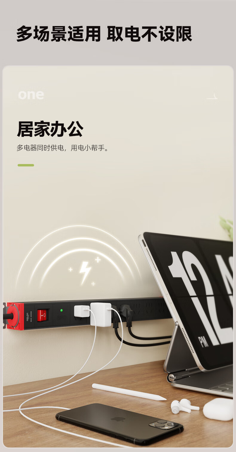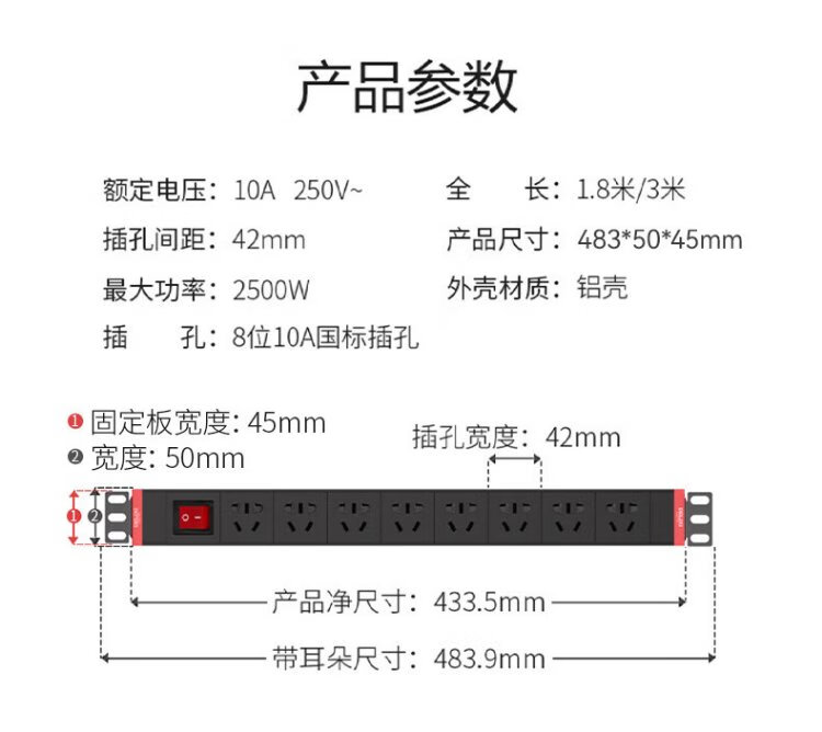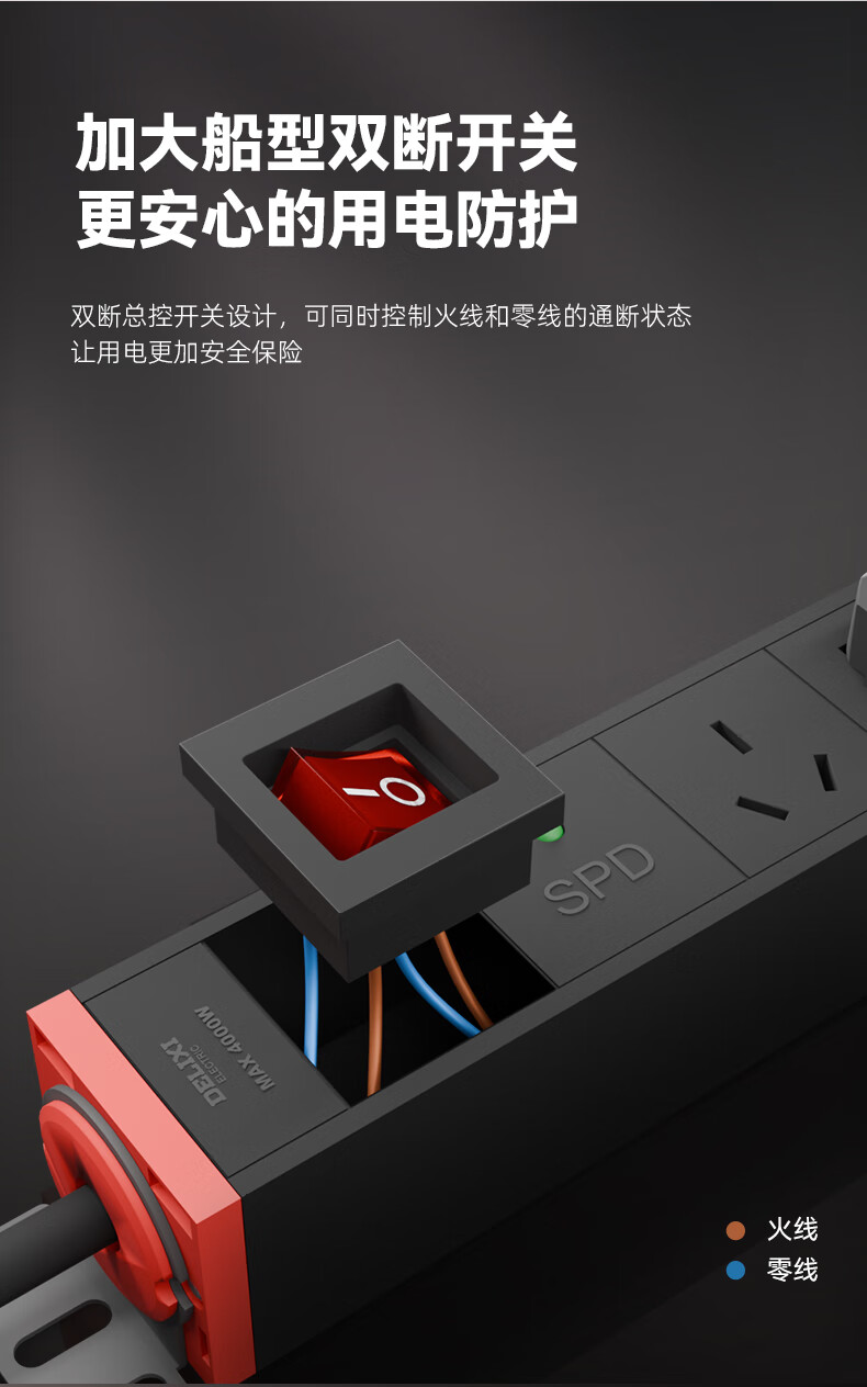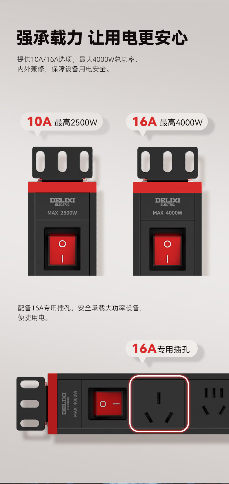 德力西(DELIXI)PDU机柜桌面电竞插座/插线板/插排/排插/接线板/拖线板 8位总控开关全长1.8米