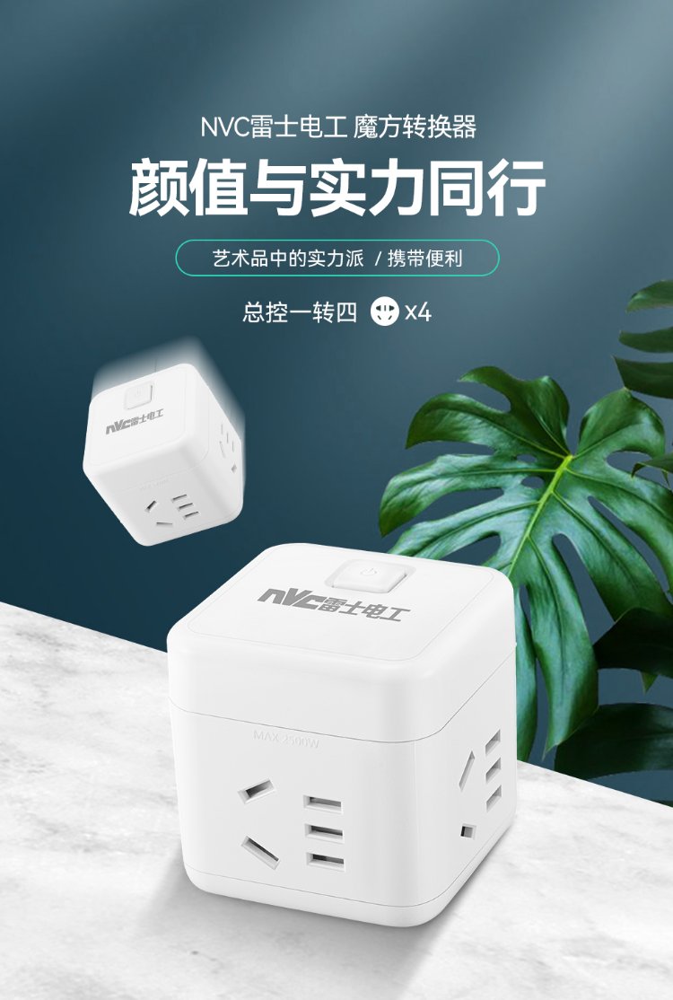 NVC NVC Electrician Wireless Small Rubik's Cube Socket Plug Strip Mini Travel Converter Multifunctional One to Four EM3110
