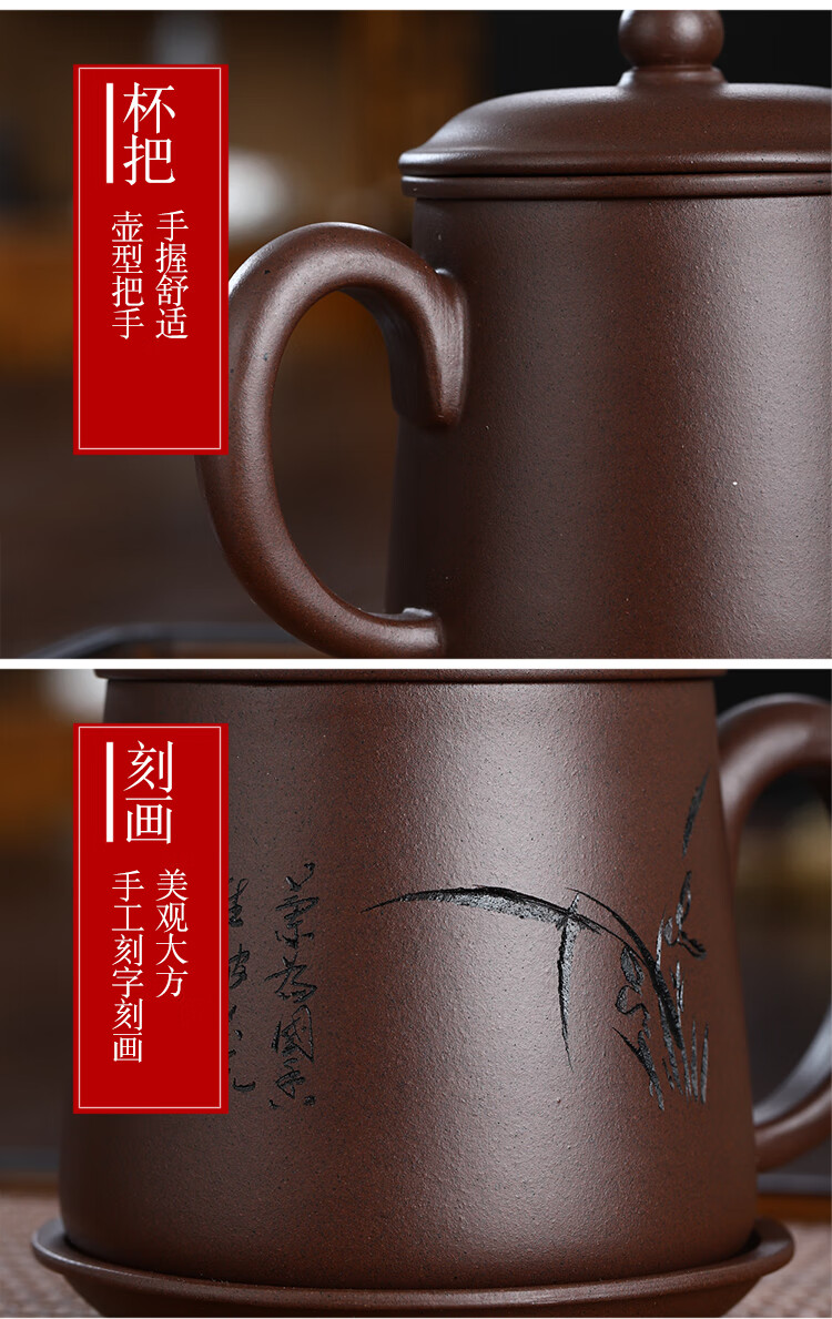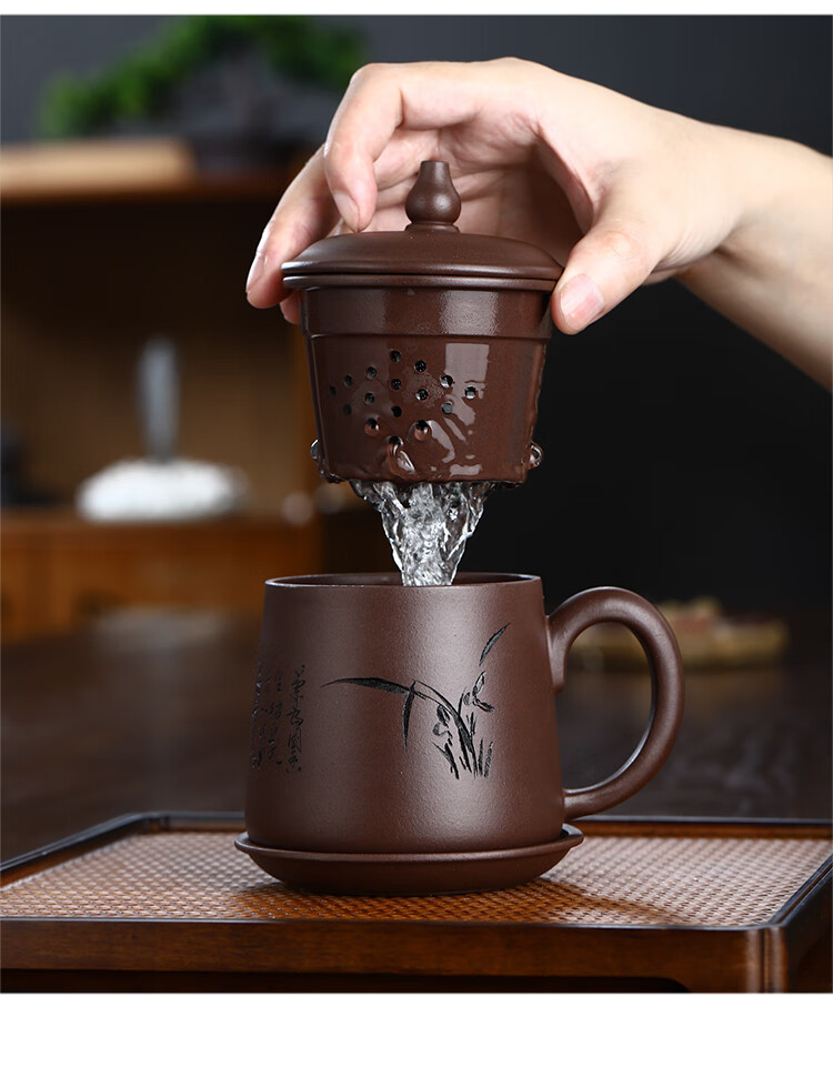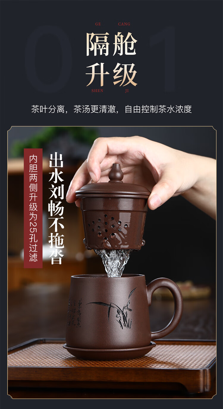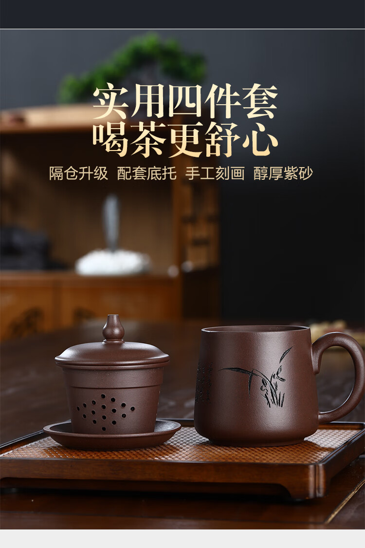 Junlixuan Zisha Cup Set Yixing Handmade Tea Cup with Filtered Tea Water Separation Four-piece Gift Box Gentleman Cup 420ml