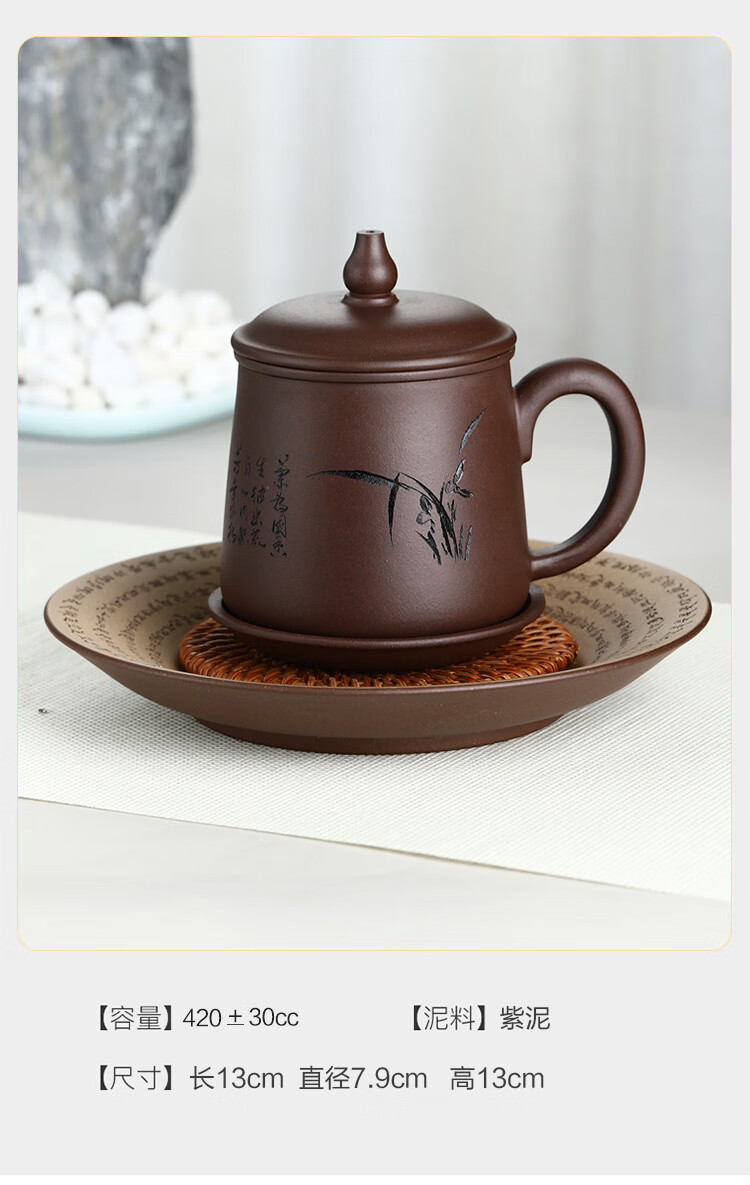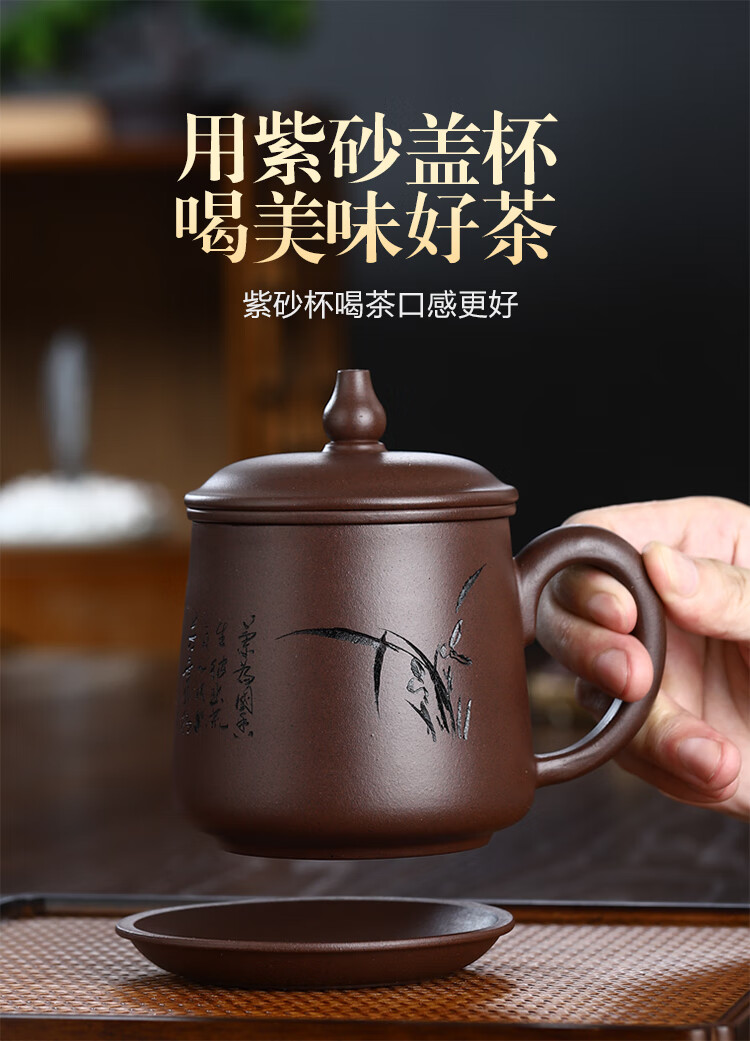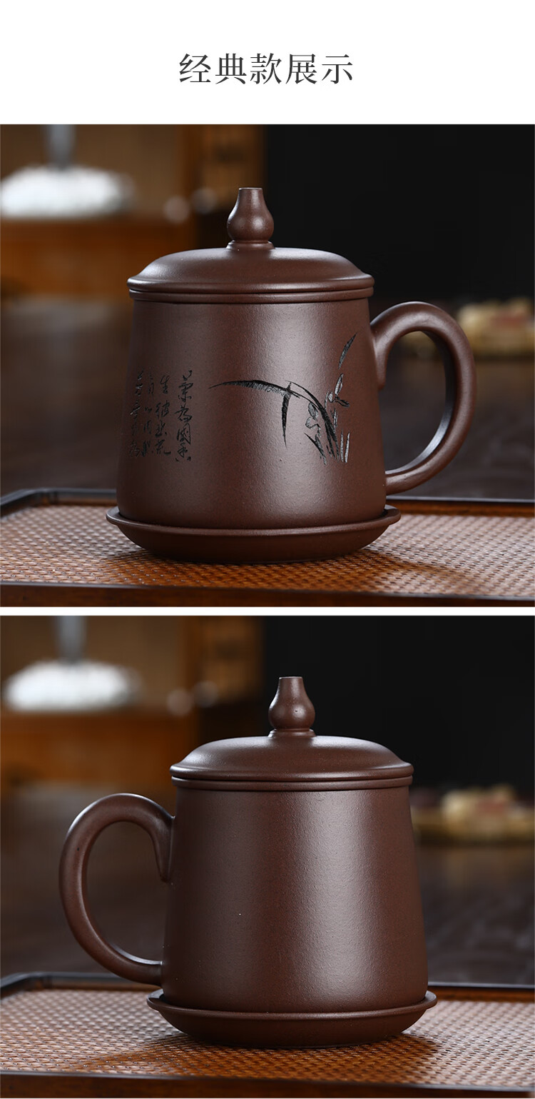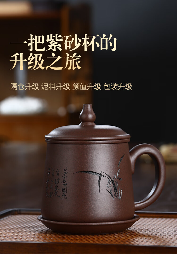 Junlixuan Zisha Cup Set Yixing Handmade Tea Cup with Filtered Tea Water Separation Four-piece Gift Box Gentleman Cup 420ml