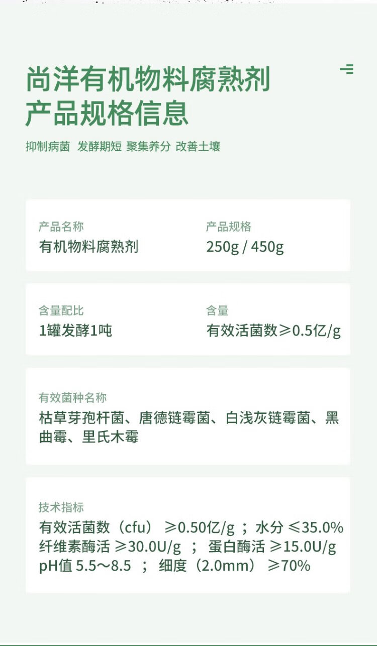 Shangyang organic fertilizer starter 450g straw rapid decomposition agent leaf bark kitchen waste farmyard fertilizer chicken manure filial piety powder