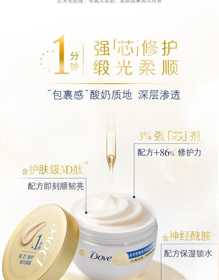 Dove Hydrating Repair Amino Acid Hair Mask 260g 3-minute Miracle Conditioner Multi-effect Damage Repair Conditioner