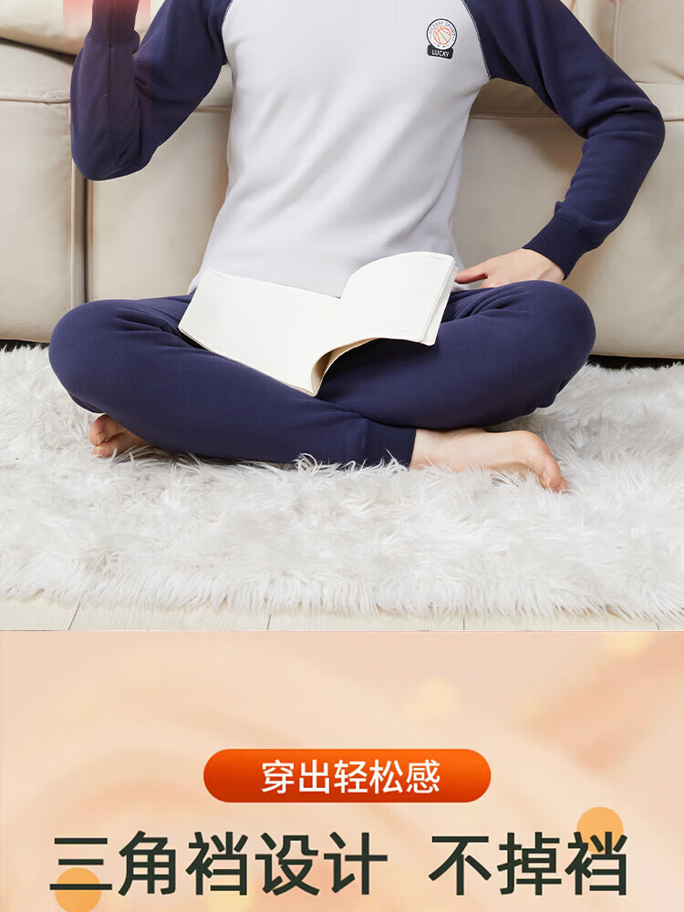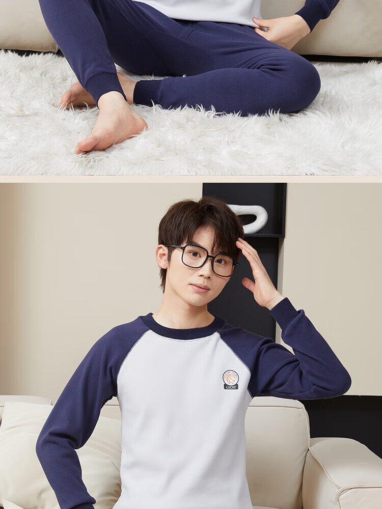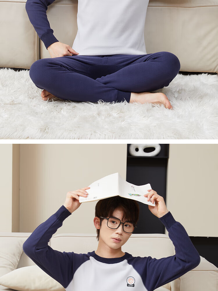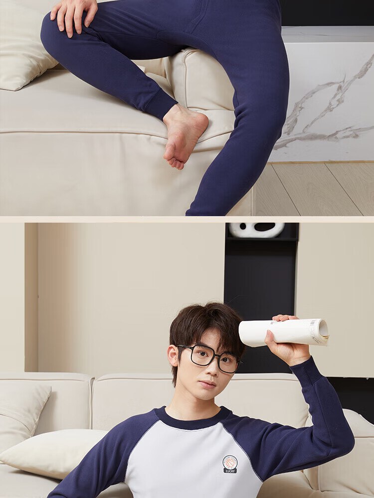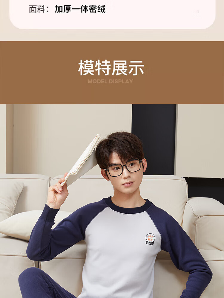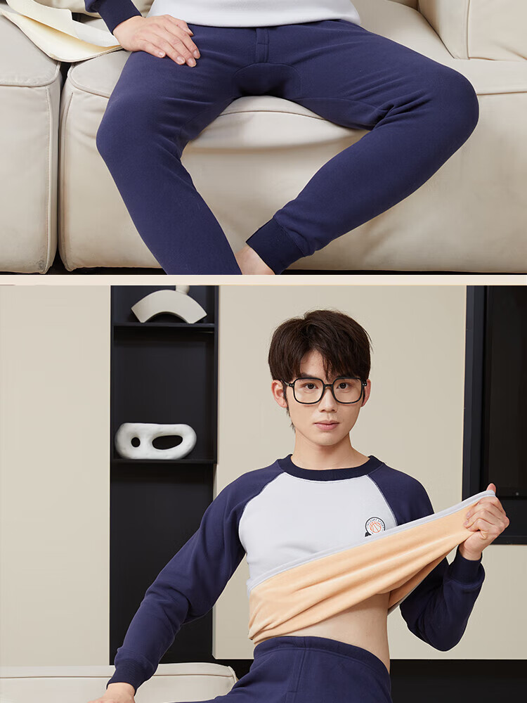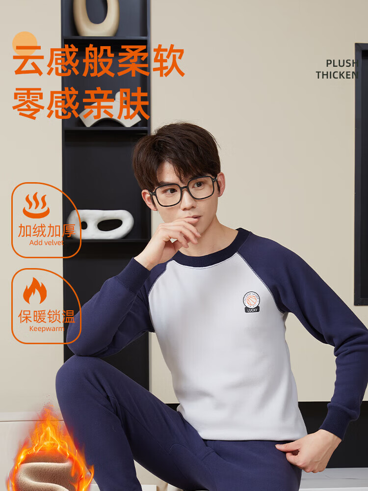 Yu Zhaolin thermal underwear men's velvet teenagers junior high school and high school students older children's thickened round neck autumn clothes and autumn pants winter suit