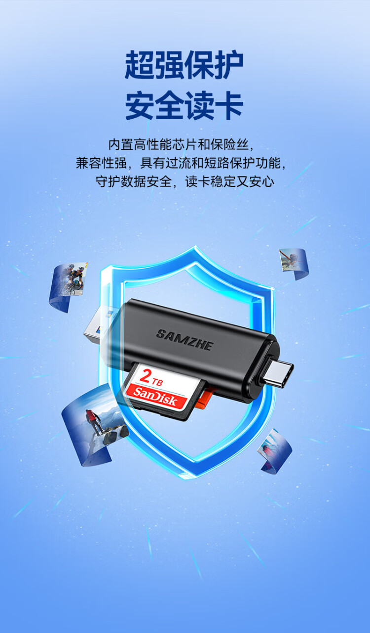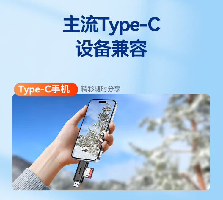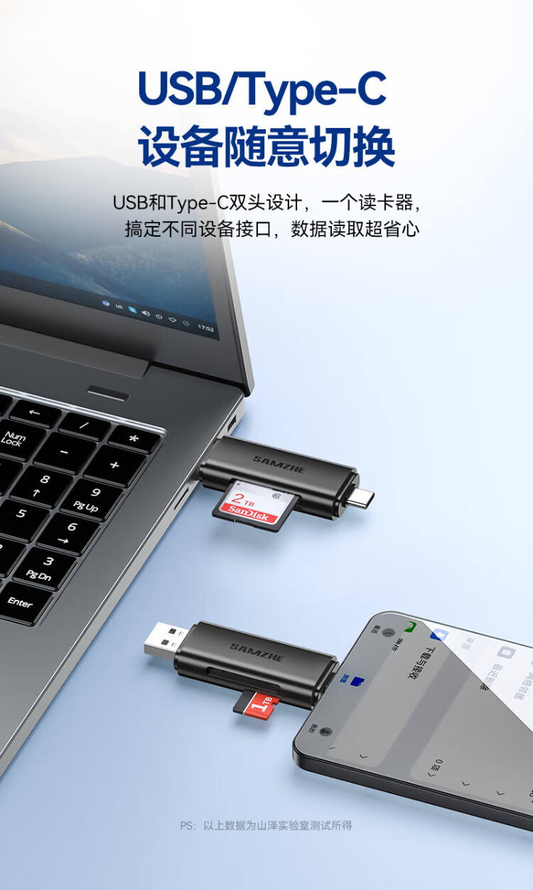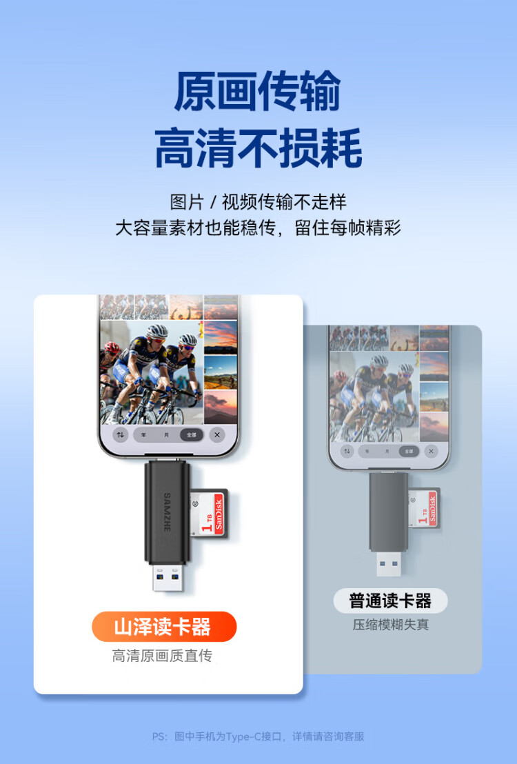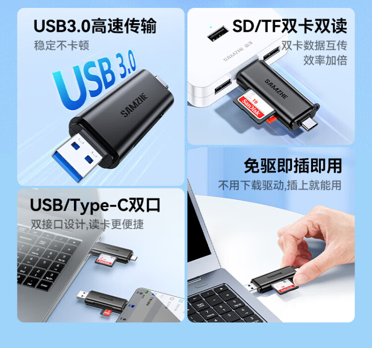 Shanze USB3.0/Type-C high-speed card reader SD/TF multi-function in one suitable for mobile phones/Apple 17/16/15 SLR cameras drone CCD monitoring memory card