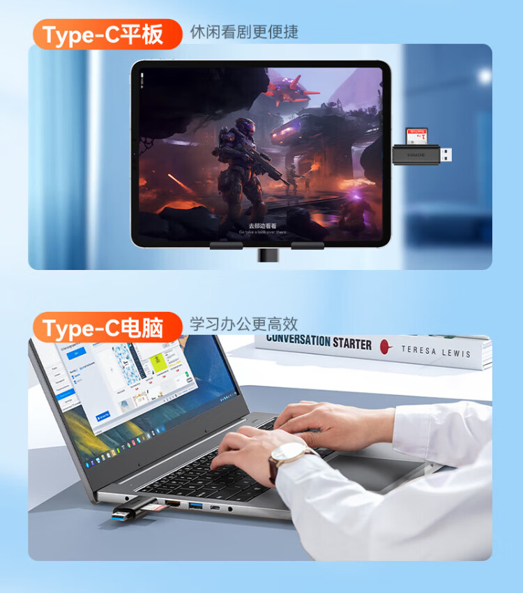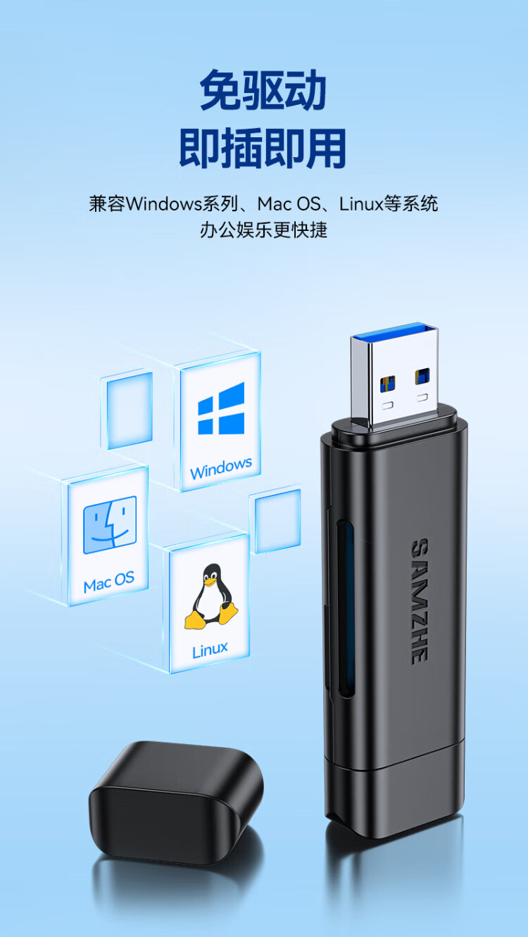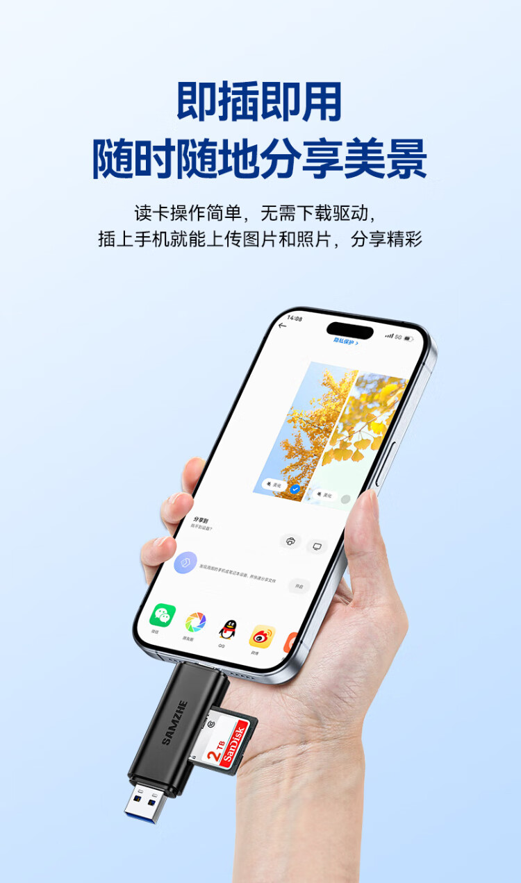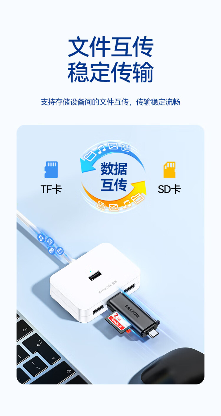 Shanze USB3.0/Type-C high-speed card reader SD/TF multi-function in one suitable for mobile phones/Apple 17/16/15 SLR cameras drone CCD monitoring memory card