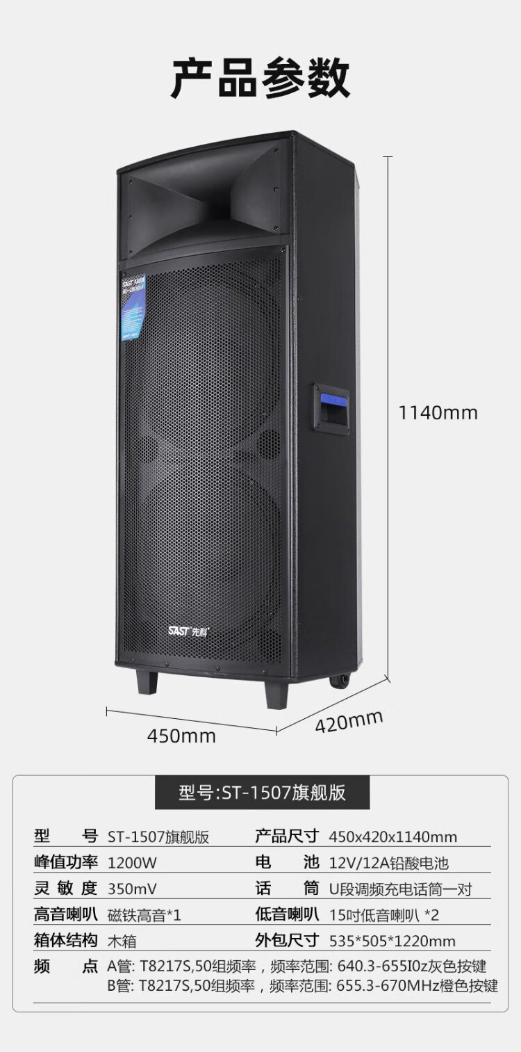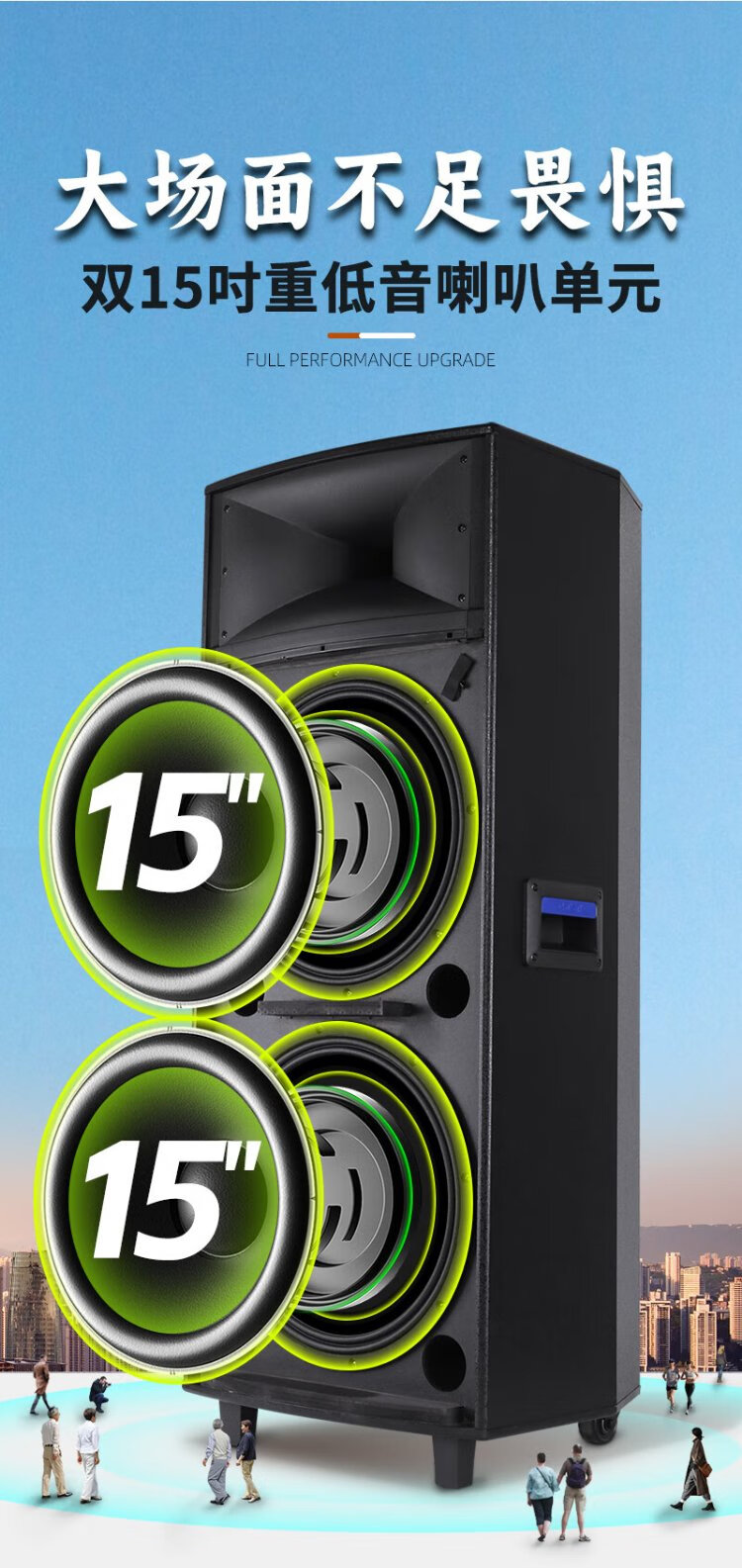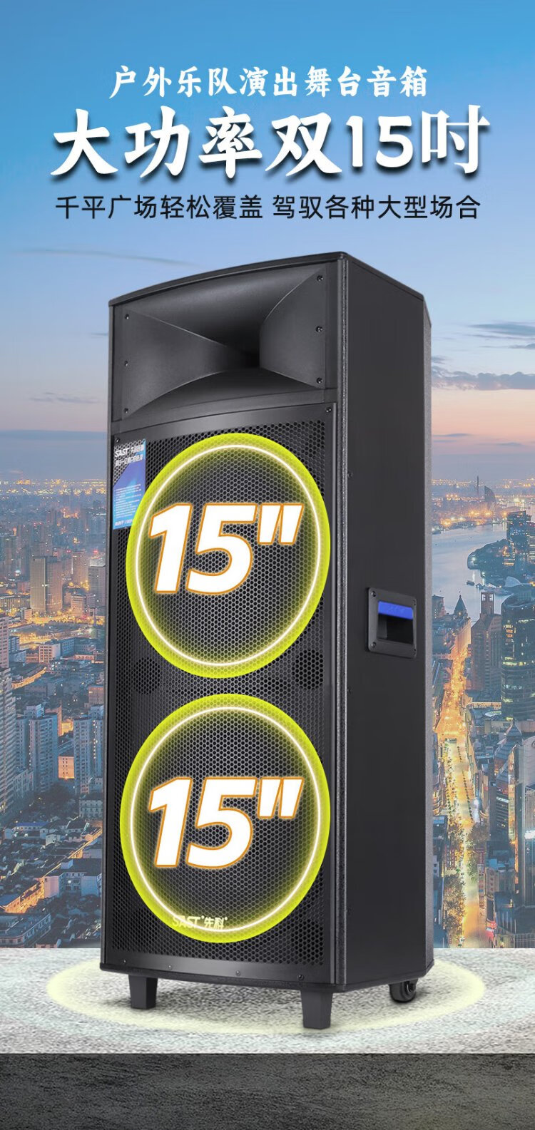Xianke ST-1507 dual 15-inch outdoor speakers stage performance square dance wireless Bluetooth subwoofer pull rod with dual microphones electric acoustic guitar bass folk singing instrument speaker