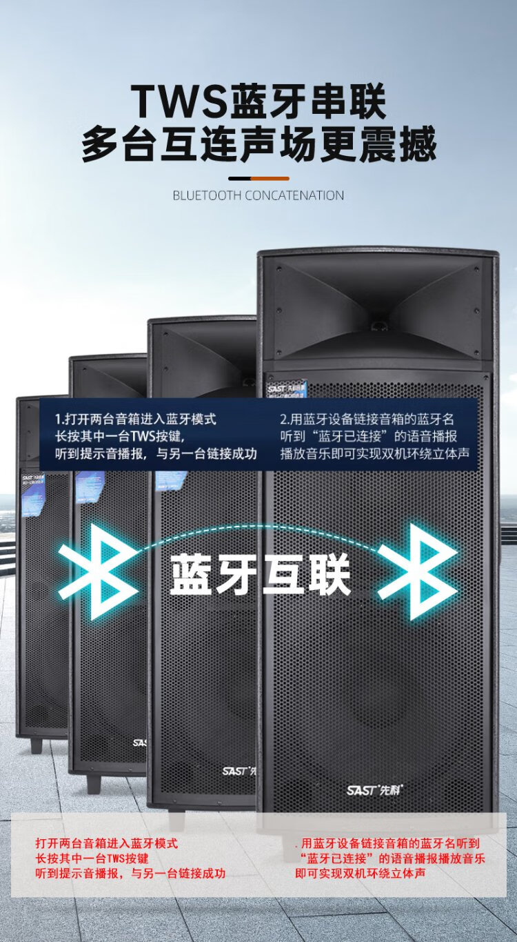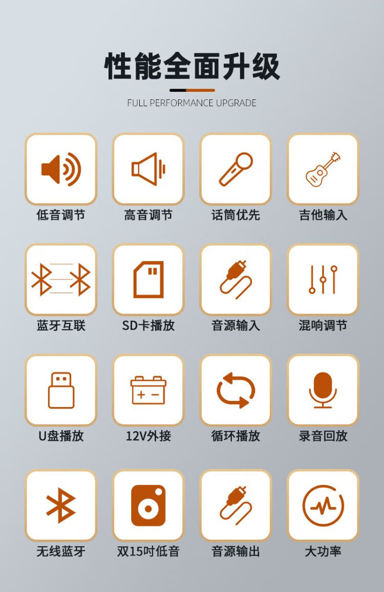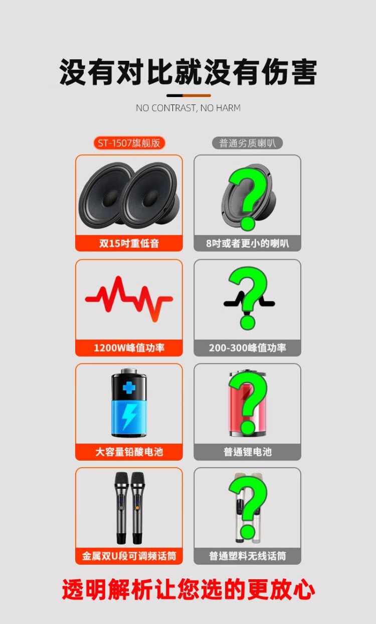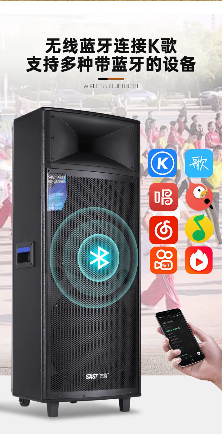 Xianke ST-1507 dual 15-inch outdoor speakers stage performance square dance wireless Bluetooth subwoofer pull rod with dual microphones electric acoustic guitar bass folk singing instrument speaker