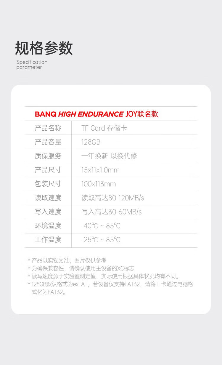 Banq&JOY co-branded 128GB TF (MicroSD) memory card U3 C10 A1 V30 4K high-speed driving recorder & surveillance camera mobile phone memory card