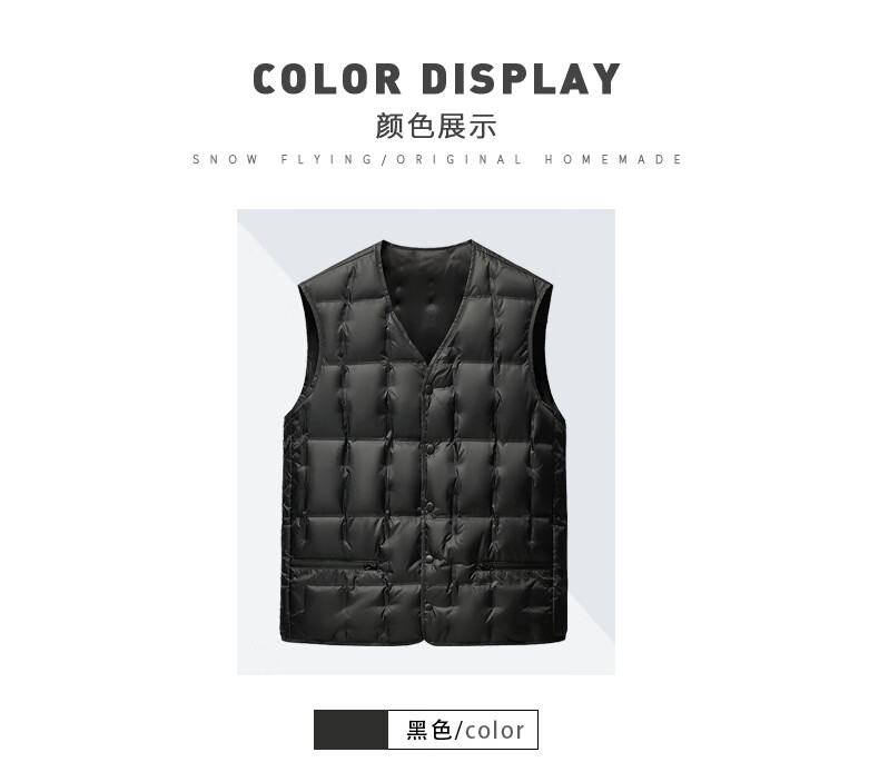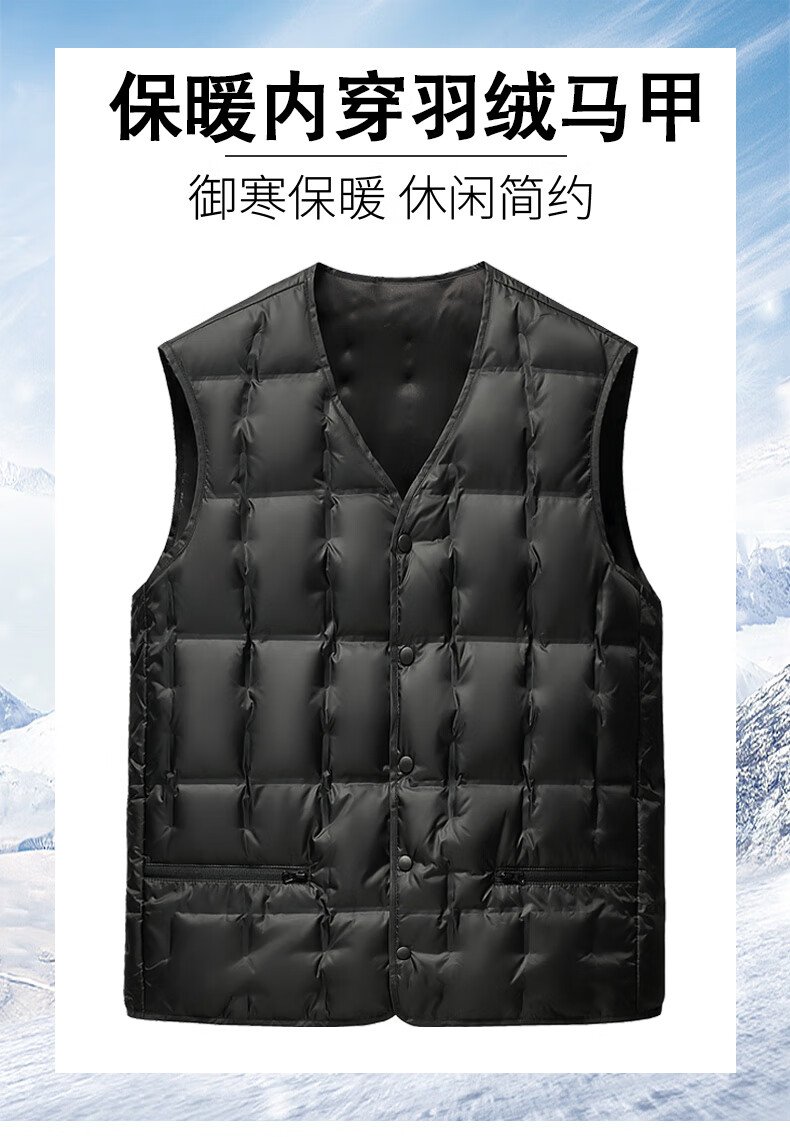 Flying in the snow, wearing down vest, down jacket, duck down winter warmth and cold protection, thick middle-aged and elderly dad's vest 175