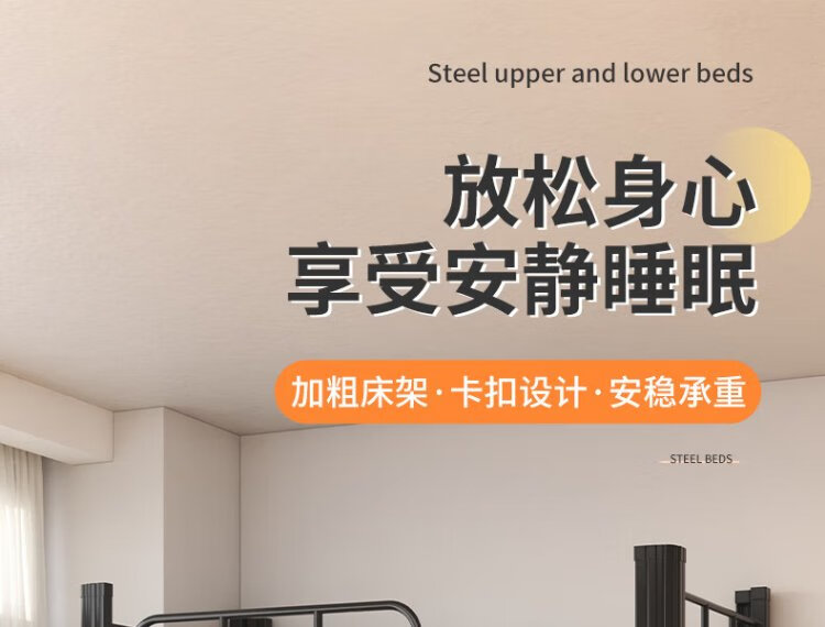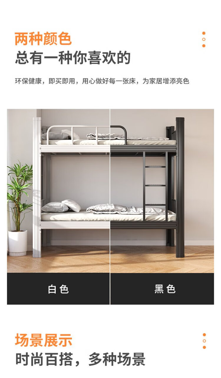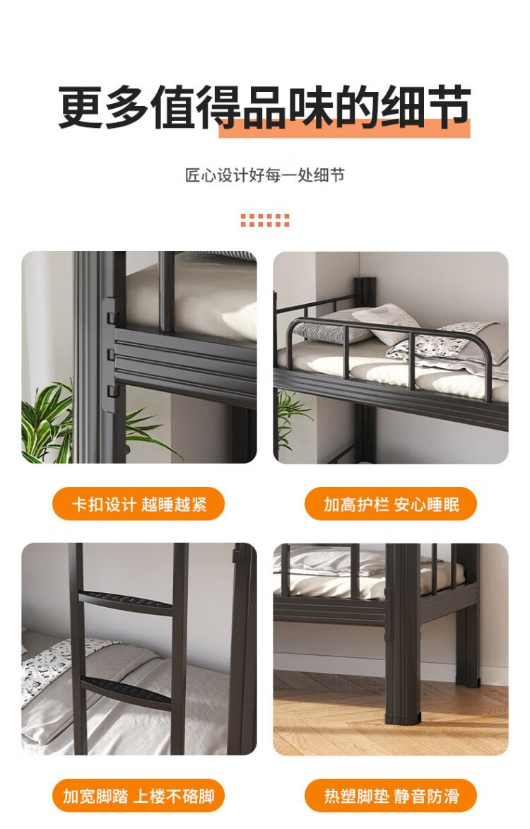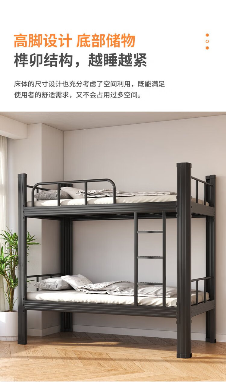 Shanwei iron bed and bunk double iron bed apartment dormitory thickened high and low bed black 1200 width free bed board