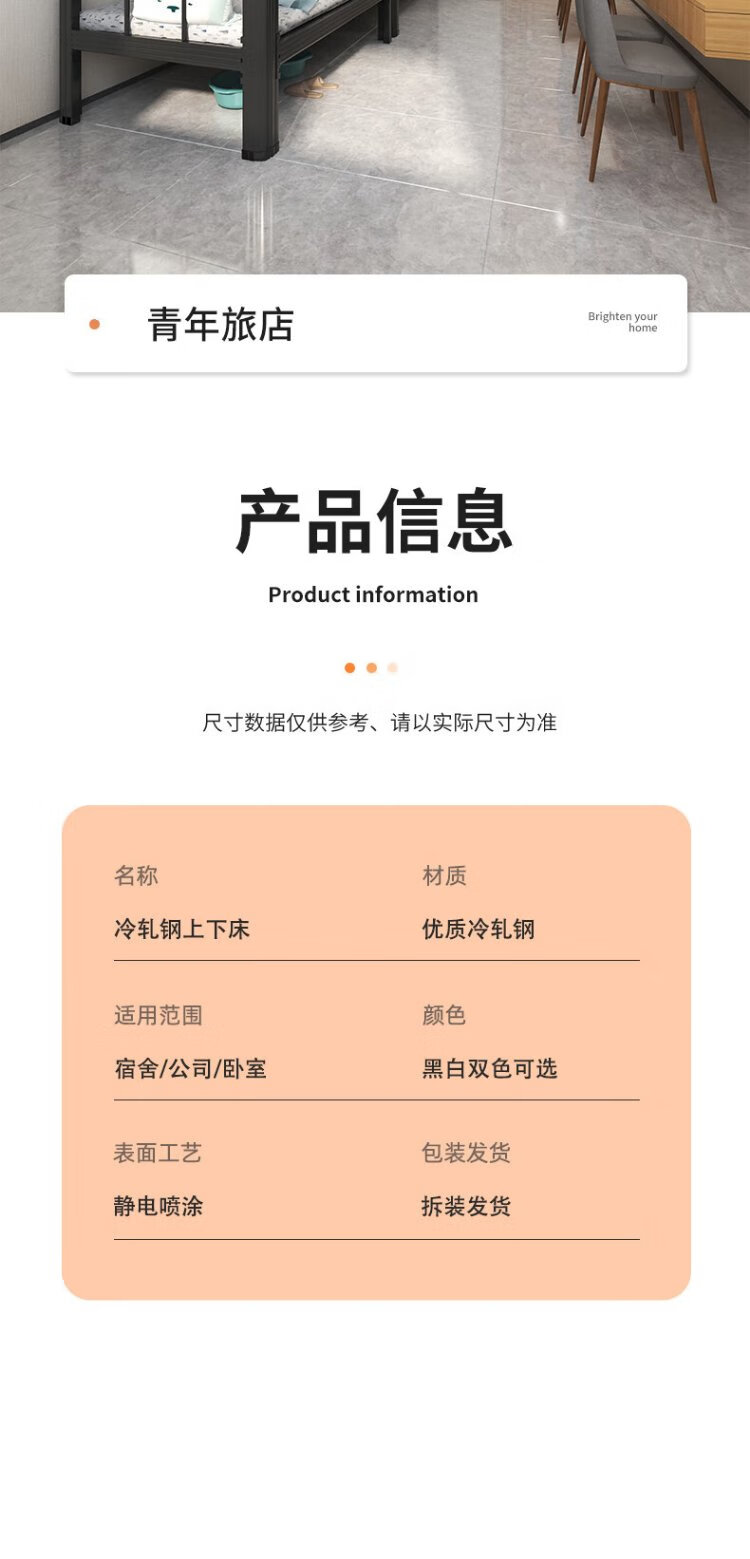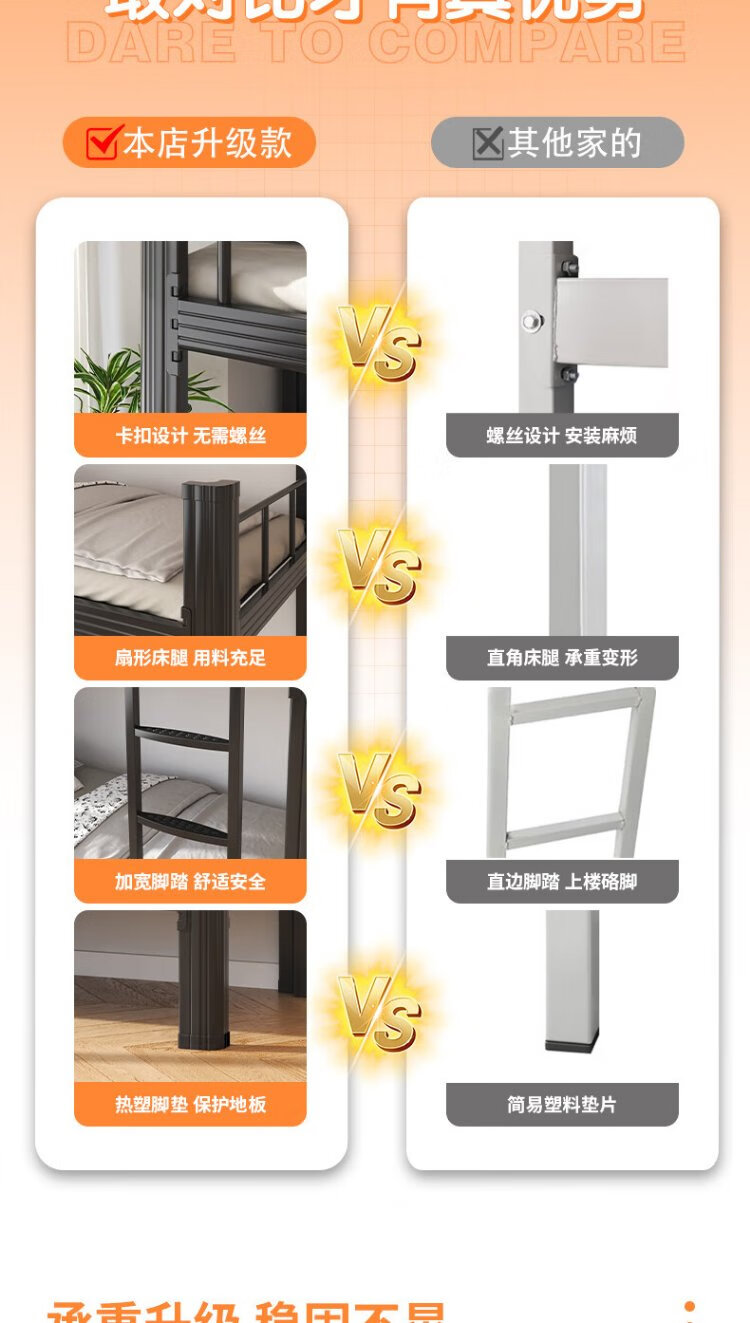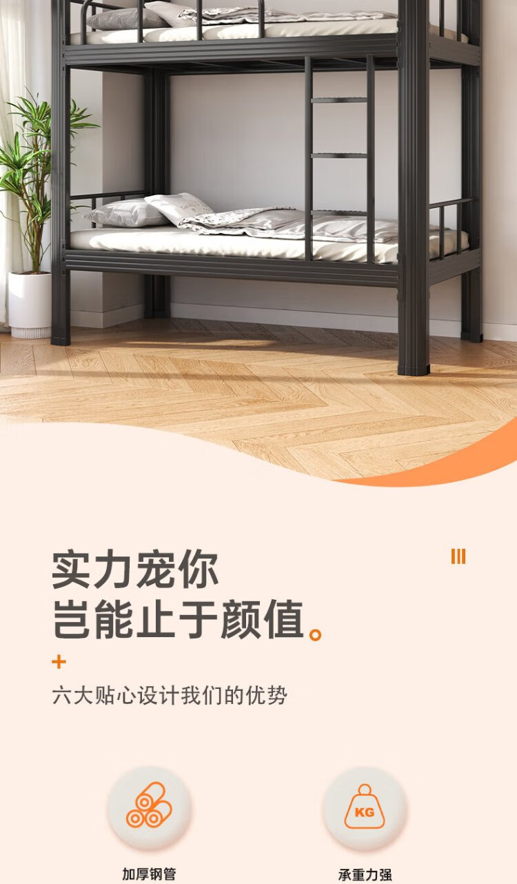 Shanwei iron bed and bunk double iron bed apartment dormitory thickened high and low bed black 1200 width free bed board