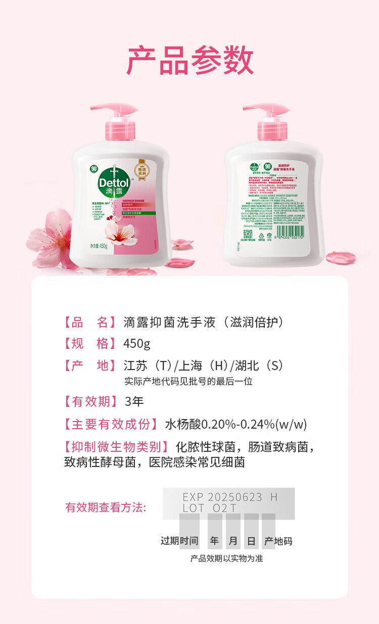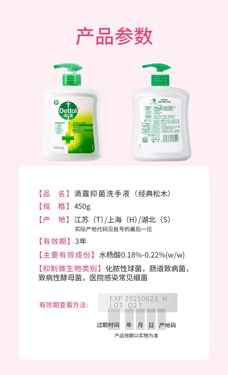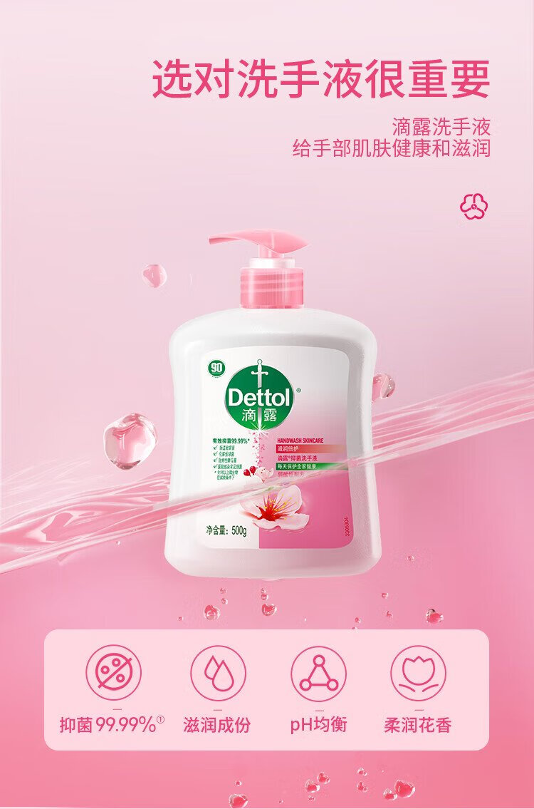 Dettol hand sanitizer antibacterial and moisturizing 450g*2+pine 450g*2 children's family refill disinfectant mild hand protection