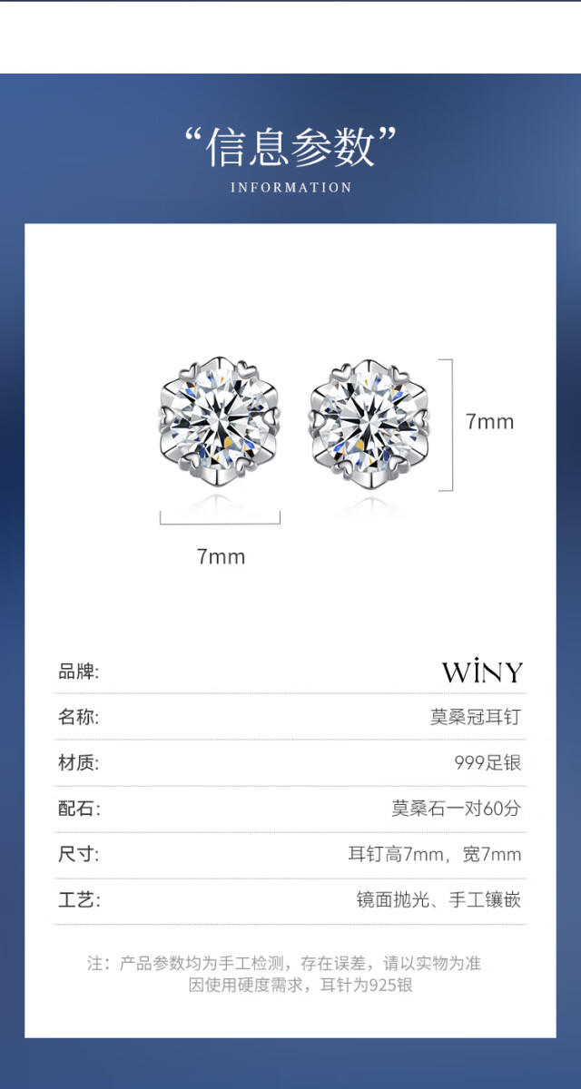 The only (Winy) moissanite 999 sterling silver earrings for mom’s birthday gift for women to show their temperament, niche and high-end earrings
