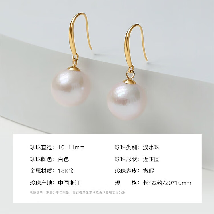 Queen of Pearls 18K Gold 10-11mm Pearl Earrings Fashionable Commuting Style Earrings Gift for Girlfriend