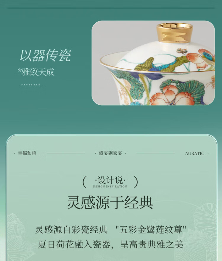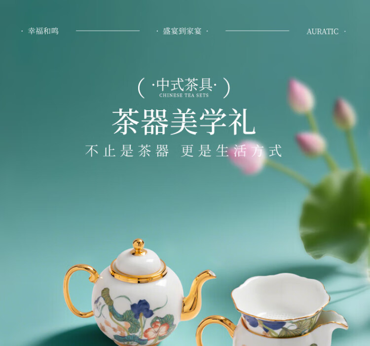 Auratic Chinese porcelain Yongfengyuan Xingfu Heming 8-piece ceramic tea set-teapot set (4 persons) gift box packaging