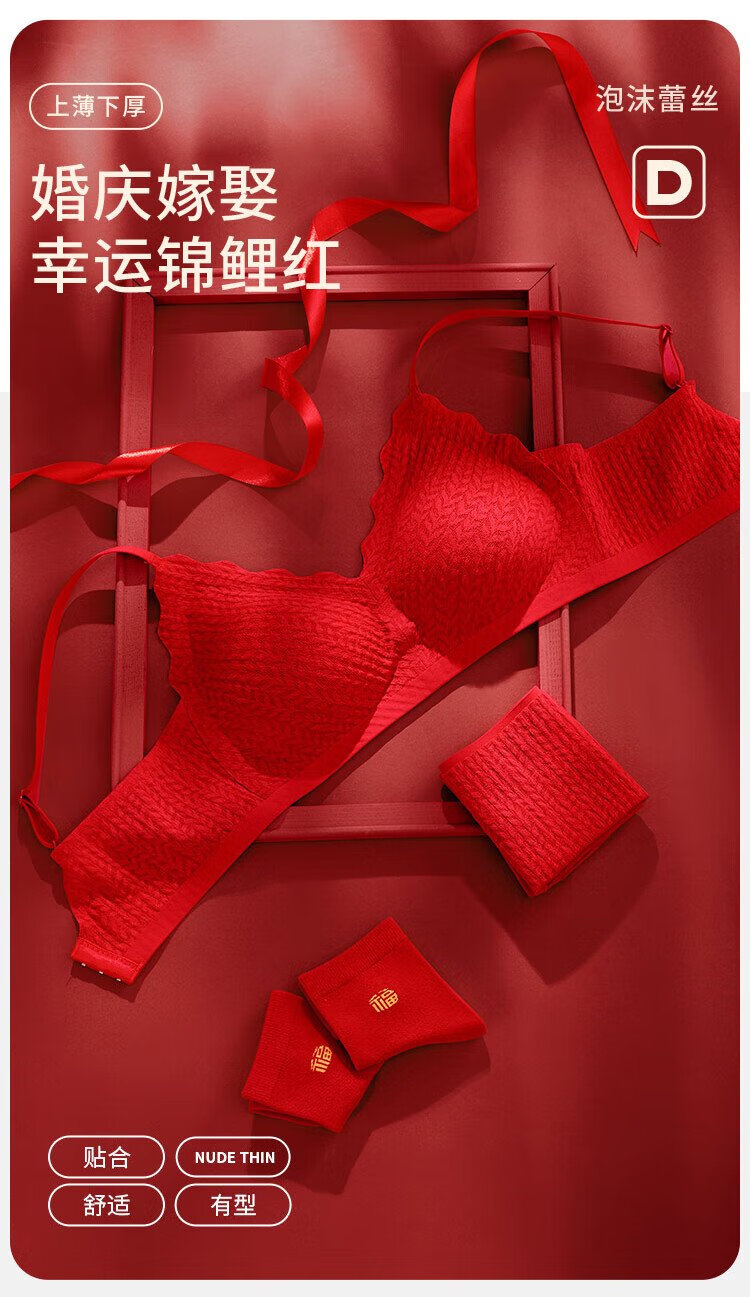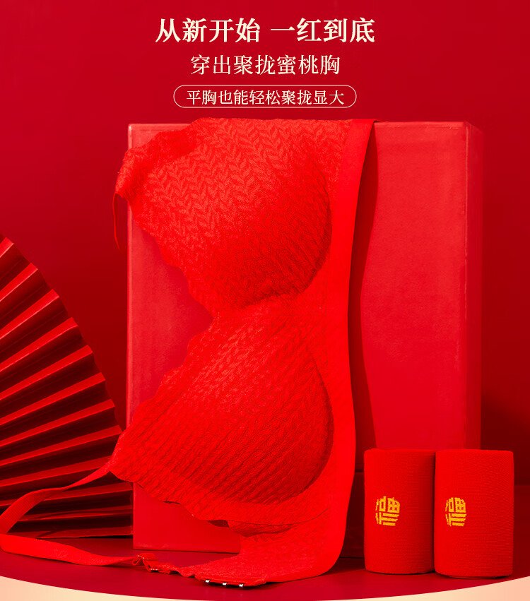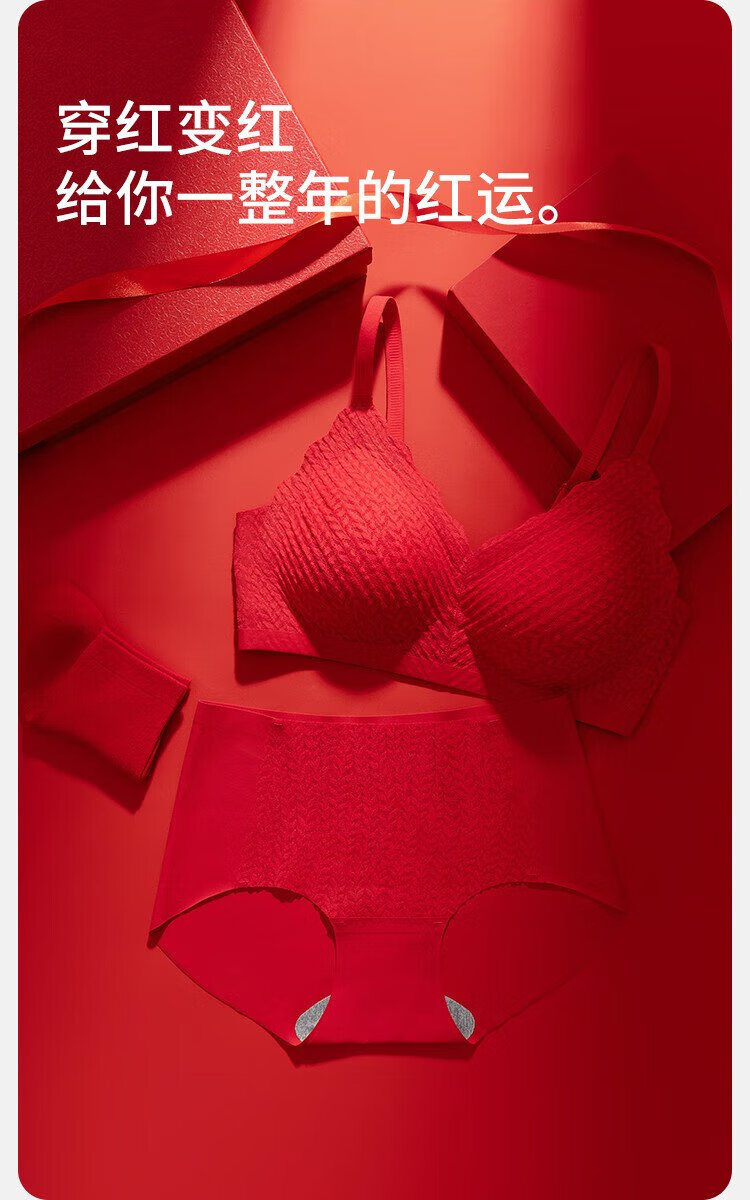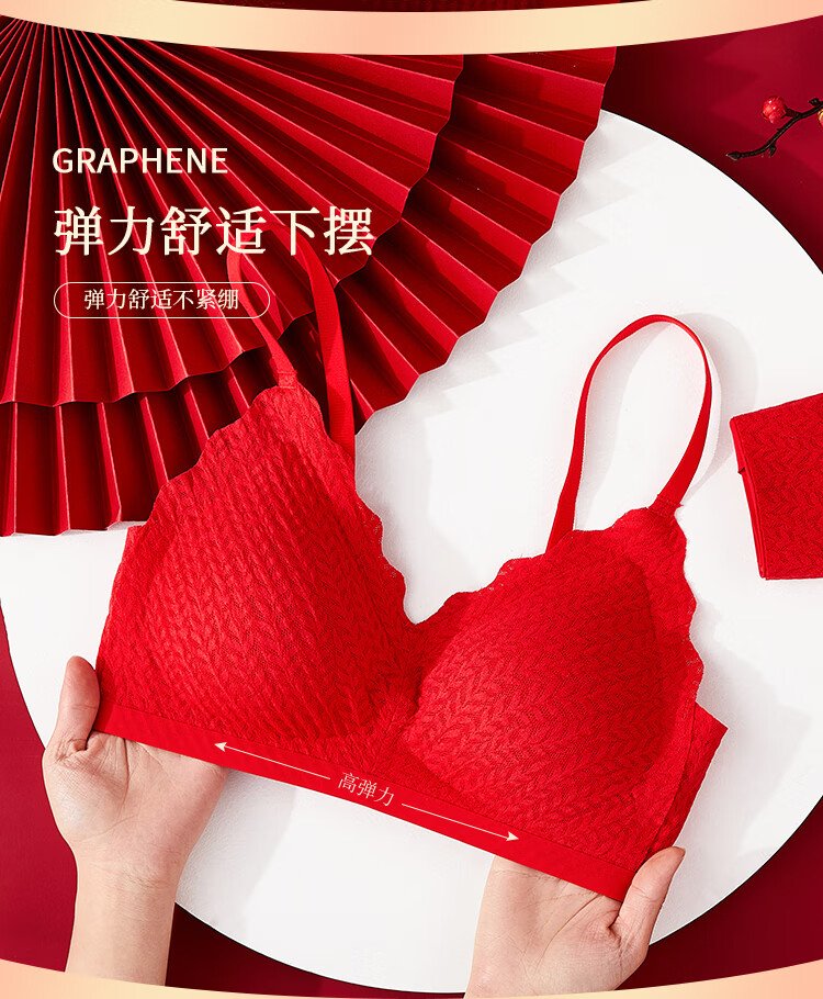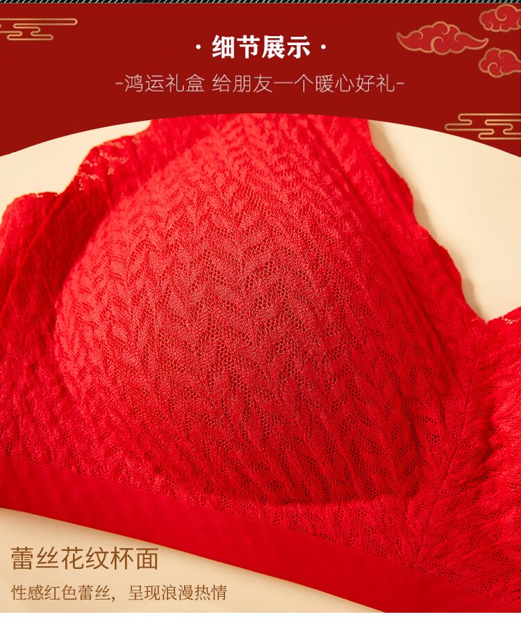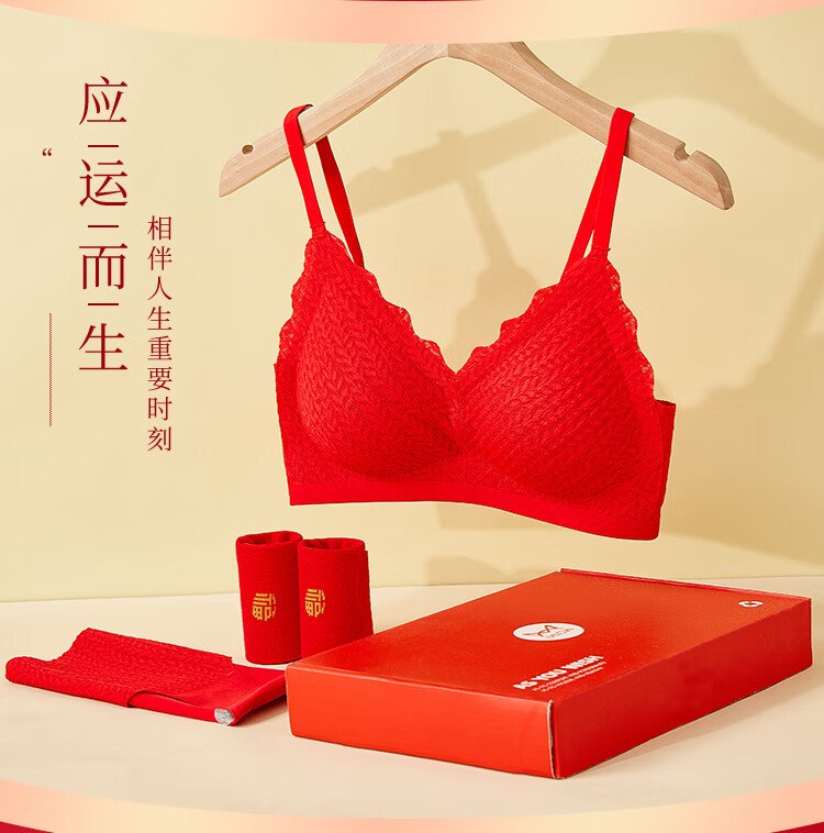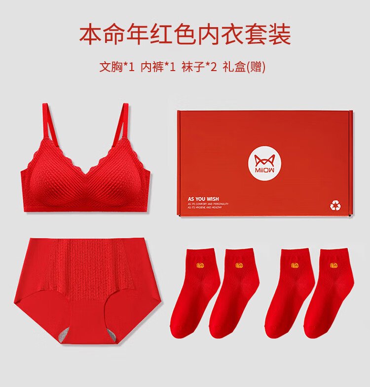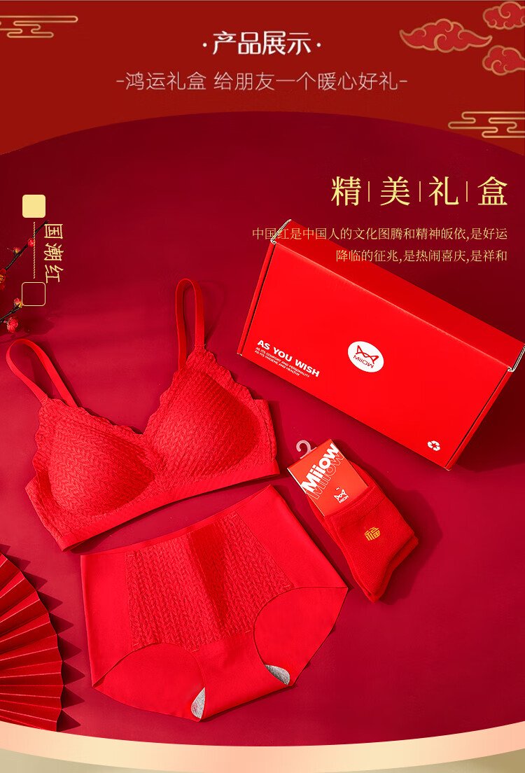 Catman Red Zodiac Year of the Horse Underwear Women's Suit No Wire Bra Wedding Festive Bra Underwear Socks*2 Gift Box
