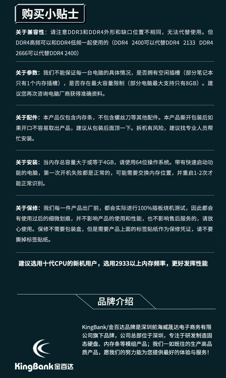 KINGBANK 16GB DDR4 3200 desktop memory module intel special module Heijue