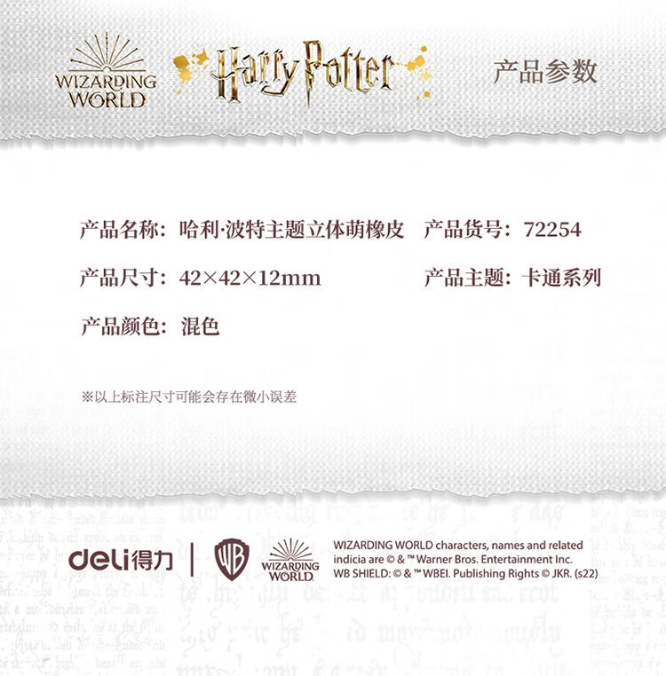 Deli (deli) Harry Potter character eraser, semi-three-dimensional relief, student high school entrance examination and college entrance examination painting eraser creative small prizes, less chips and no traces