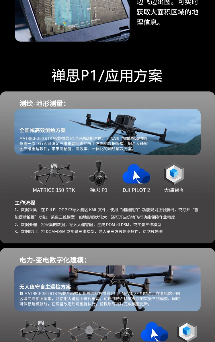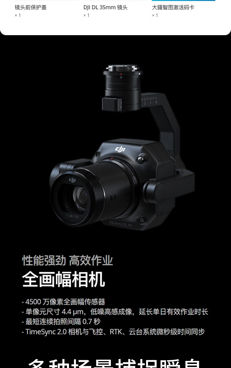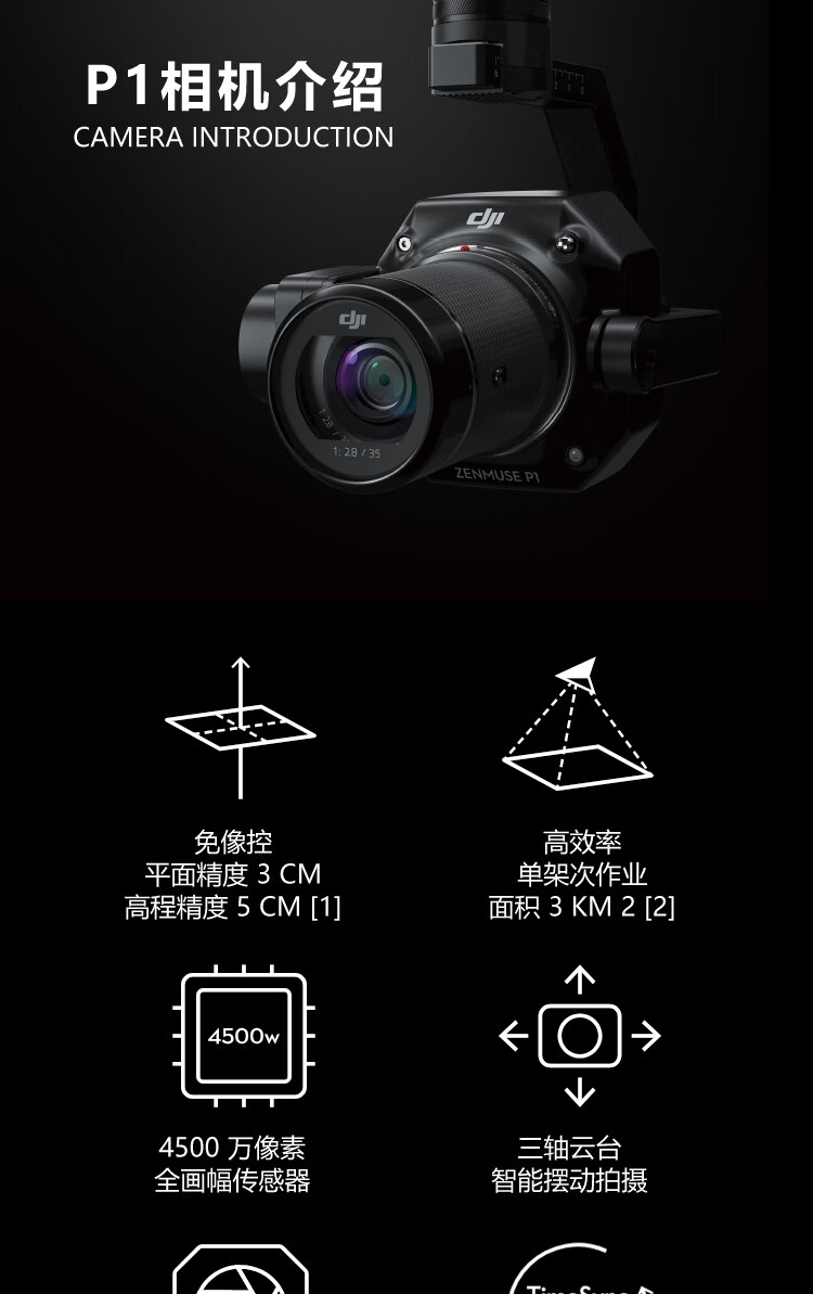 DJI Zenmuse P1 full-frame three-axis gimbal camera, two-dimensional and three-dimensional surveying, close measurement, high-definition aerial photography, compatible with M400/M350 drones
