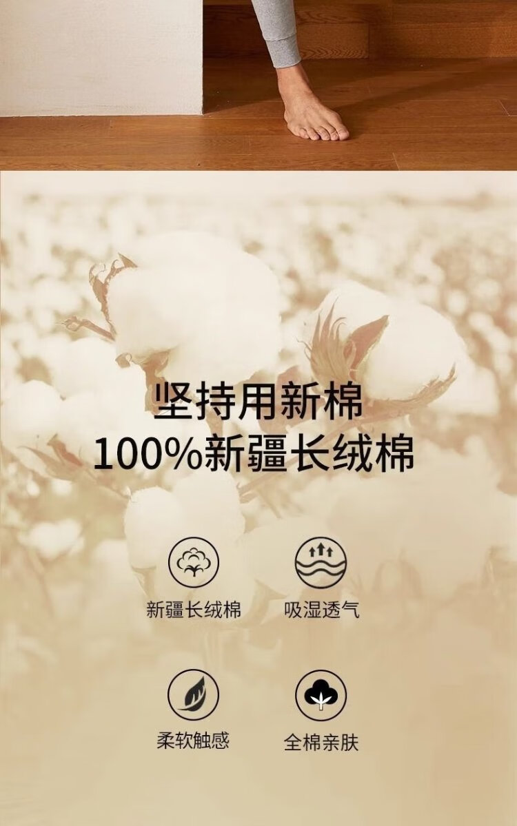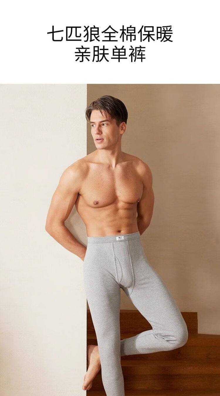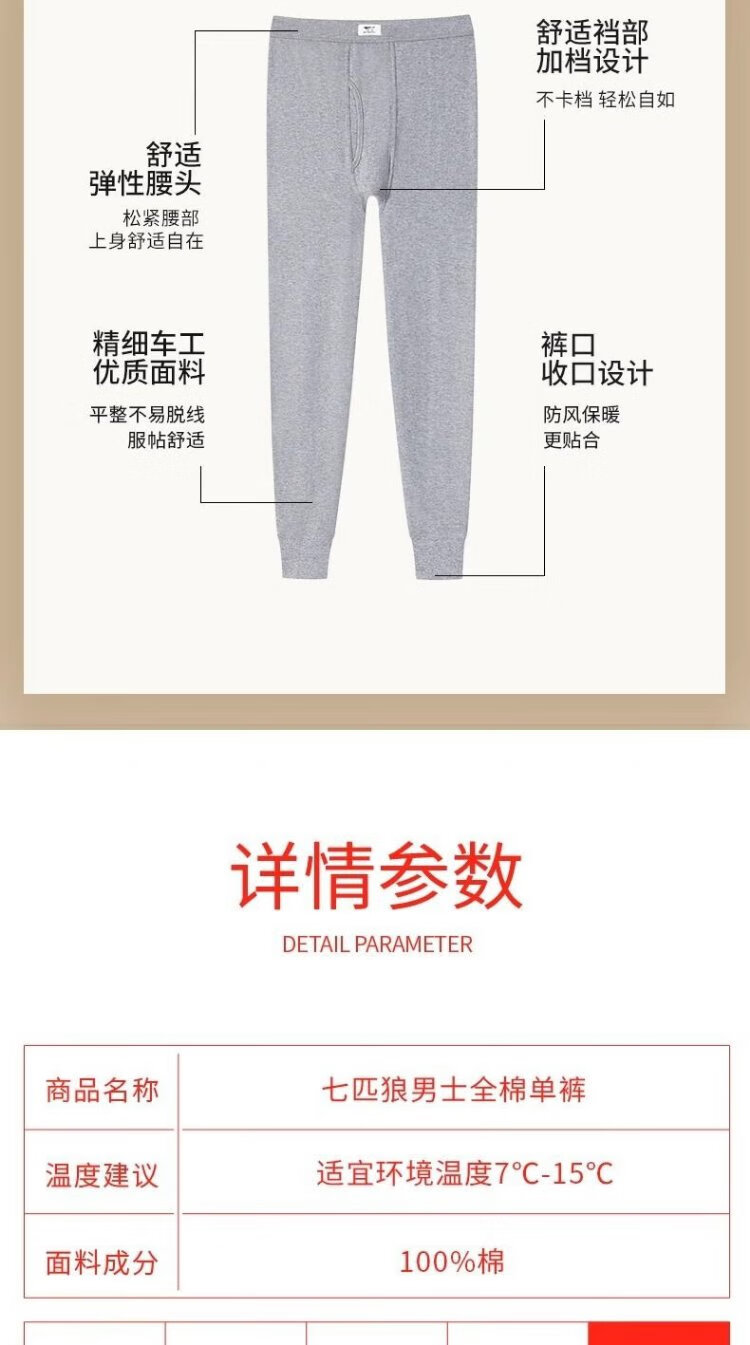 SEPTWOLVES men's long johns two-piece set 100% cotton antibacterial long johns men's thin leggings autumn and winter cotton woolen trousers warm linen pants