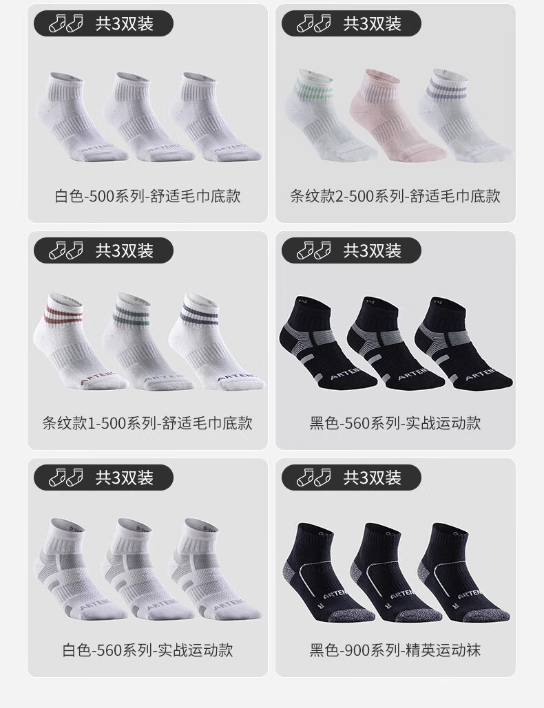 Decathlon sports socks, racket sports, adult mid-top sports socks-2308218
