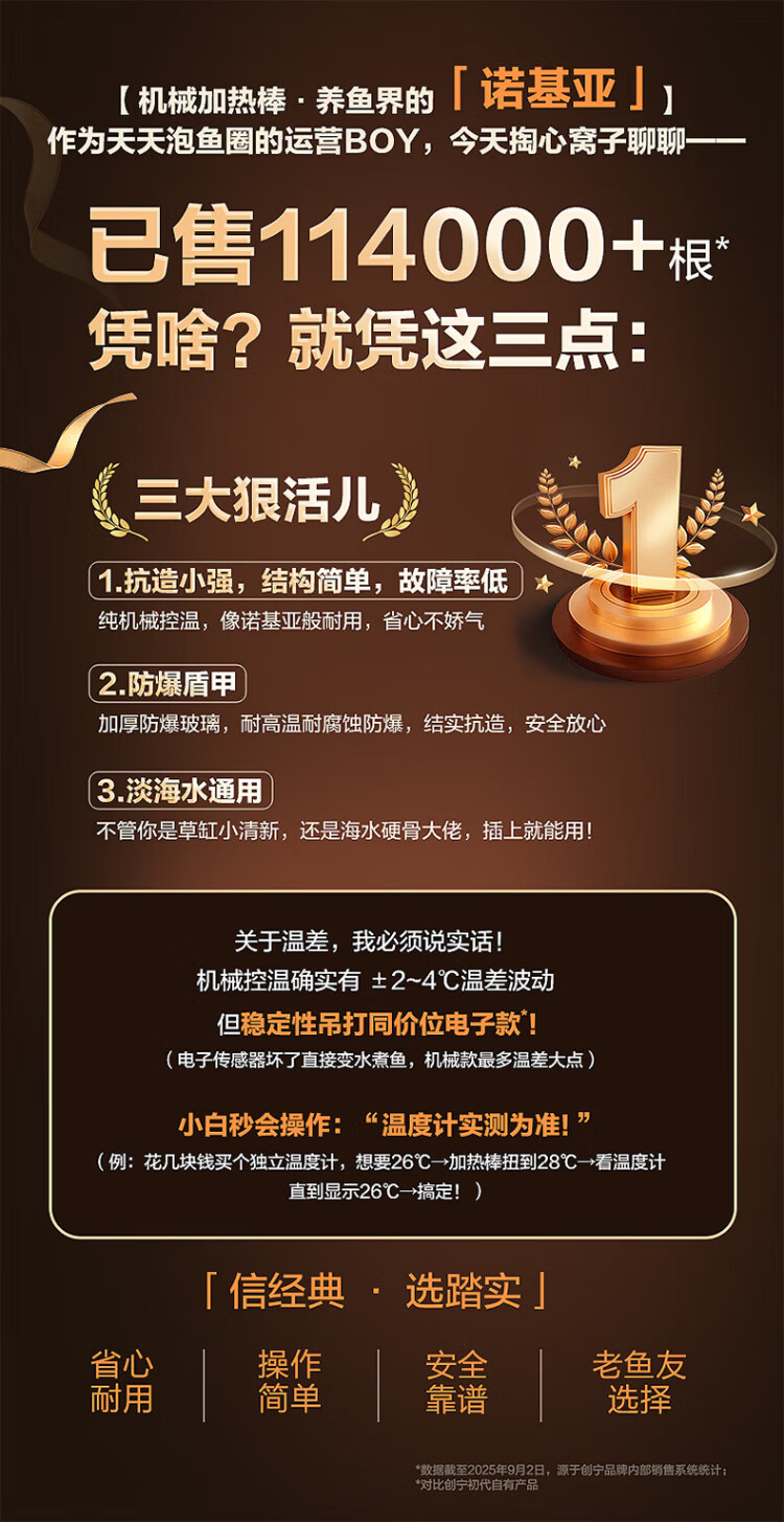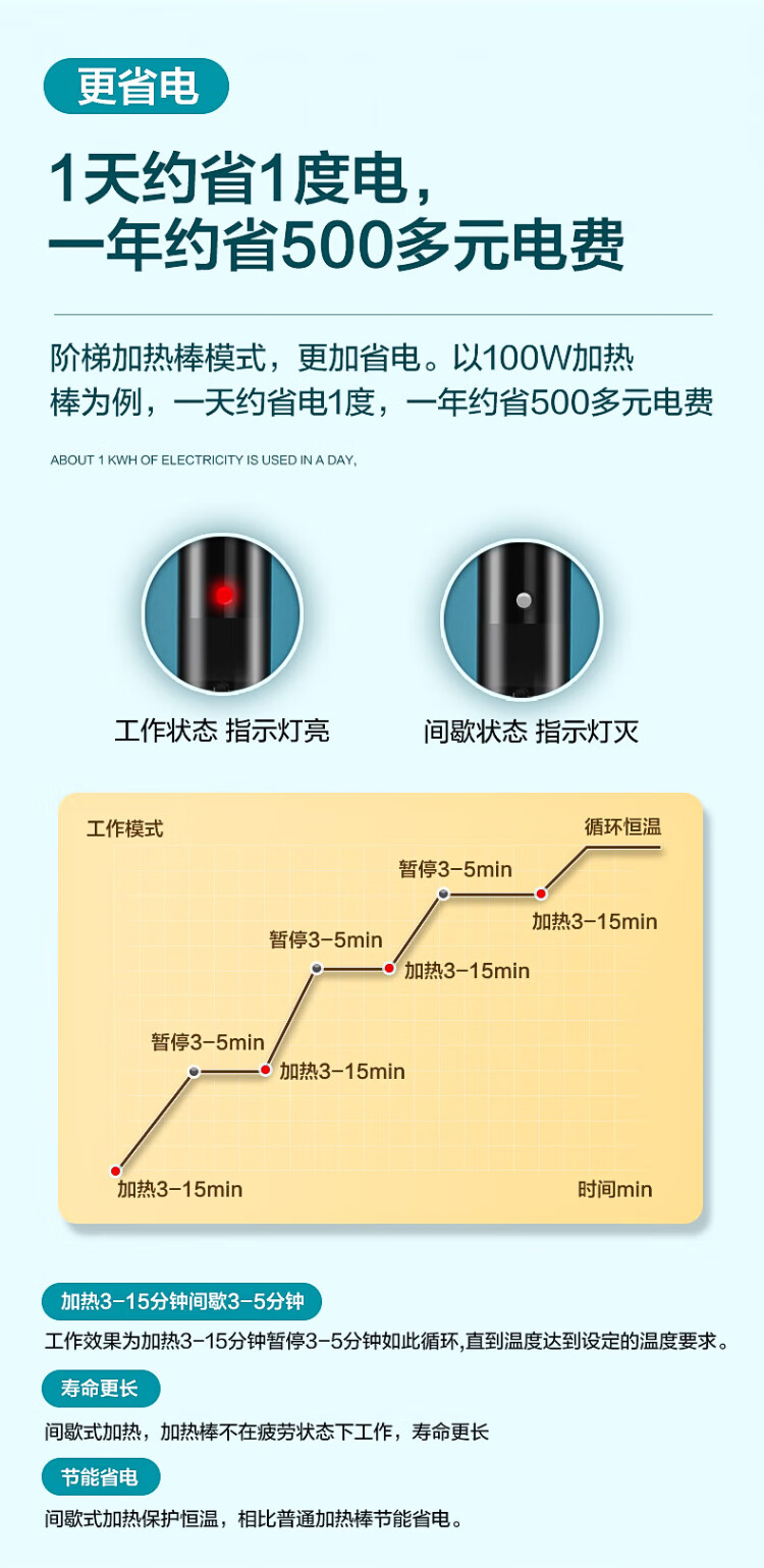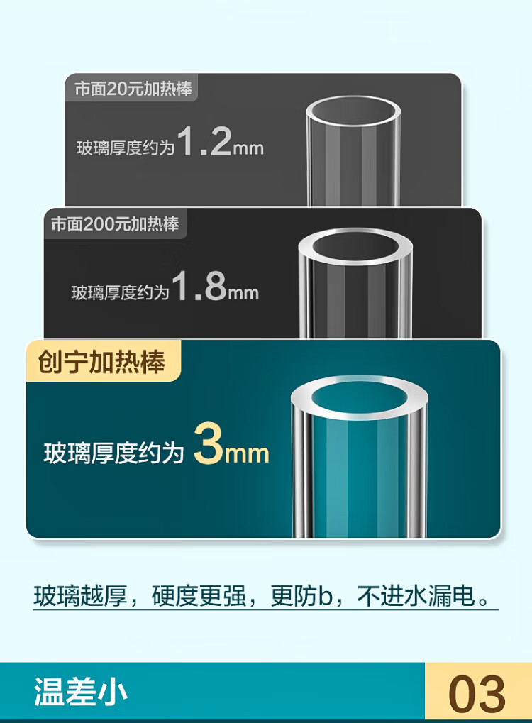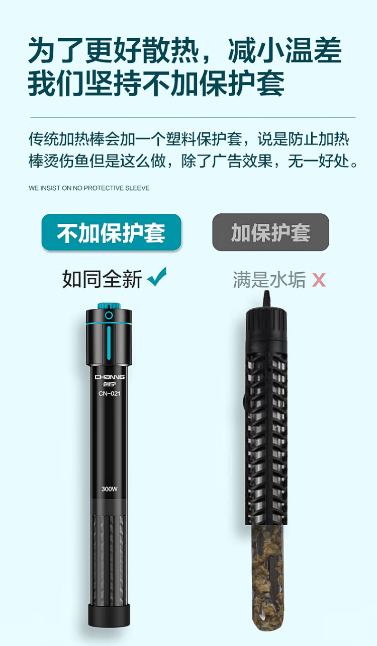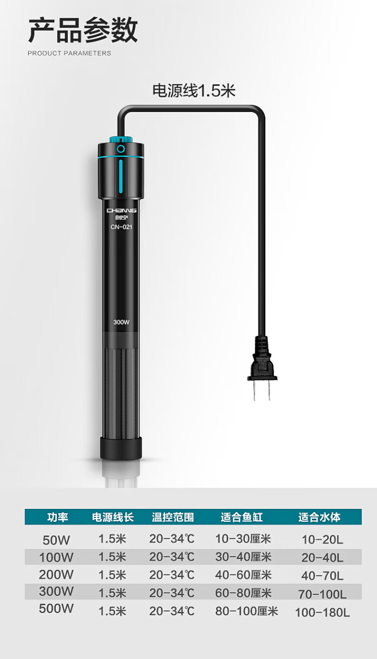 Chuangning fish tank heating rod 100W suitable for 30-50L water volume dual temperature automatic constant temperature heating rod quartz heater