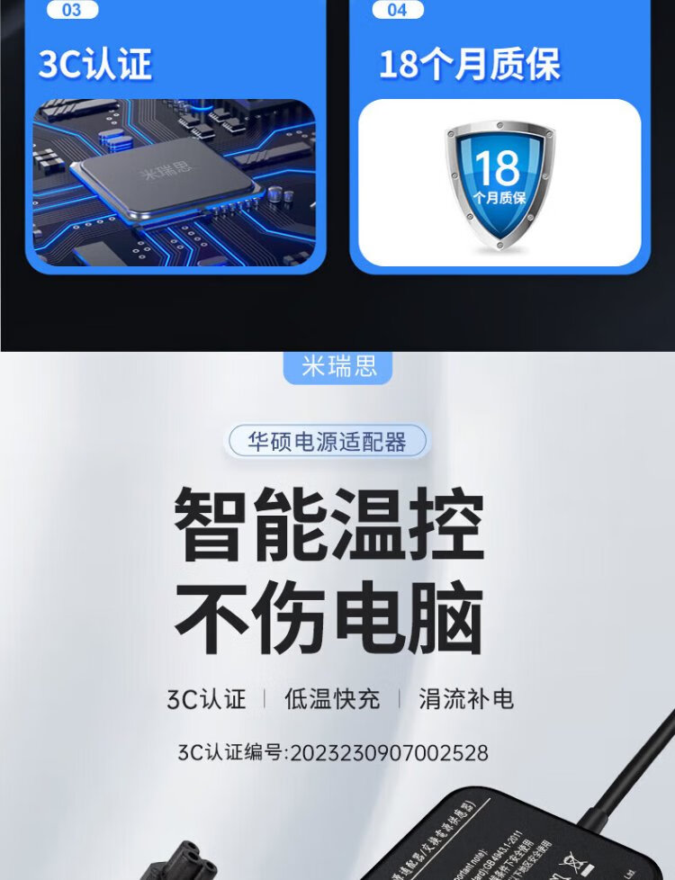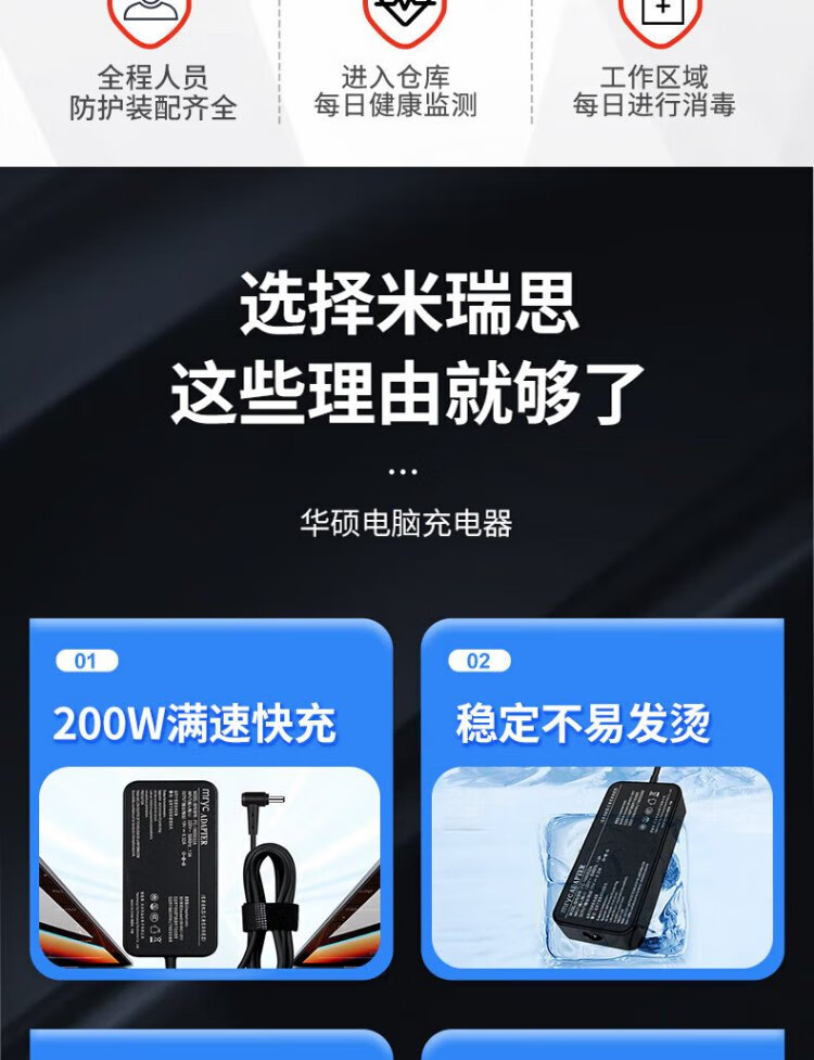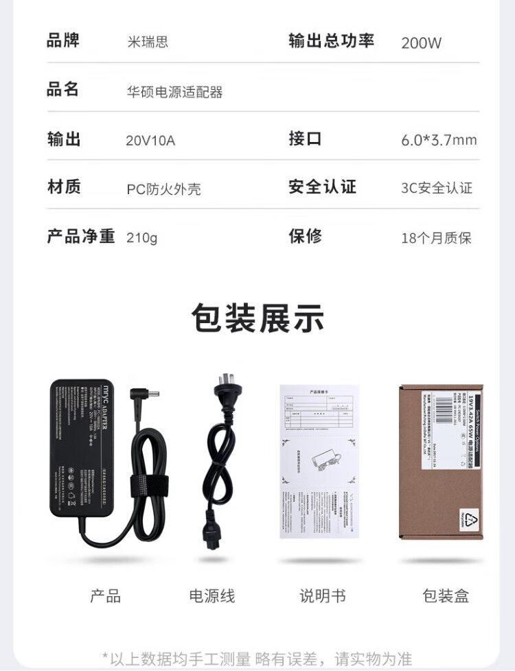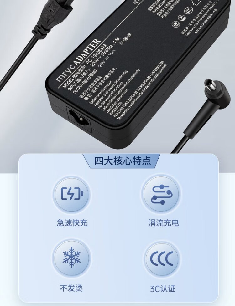 米瑞思(mryc)华硕笔记本充电器天选2魔霸新冰锐 20V10A 6.0*3.7圆口带针200W电脑电源适配器线FA506QRM58