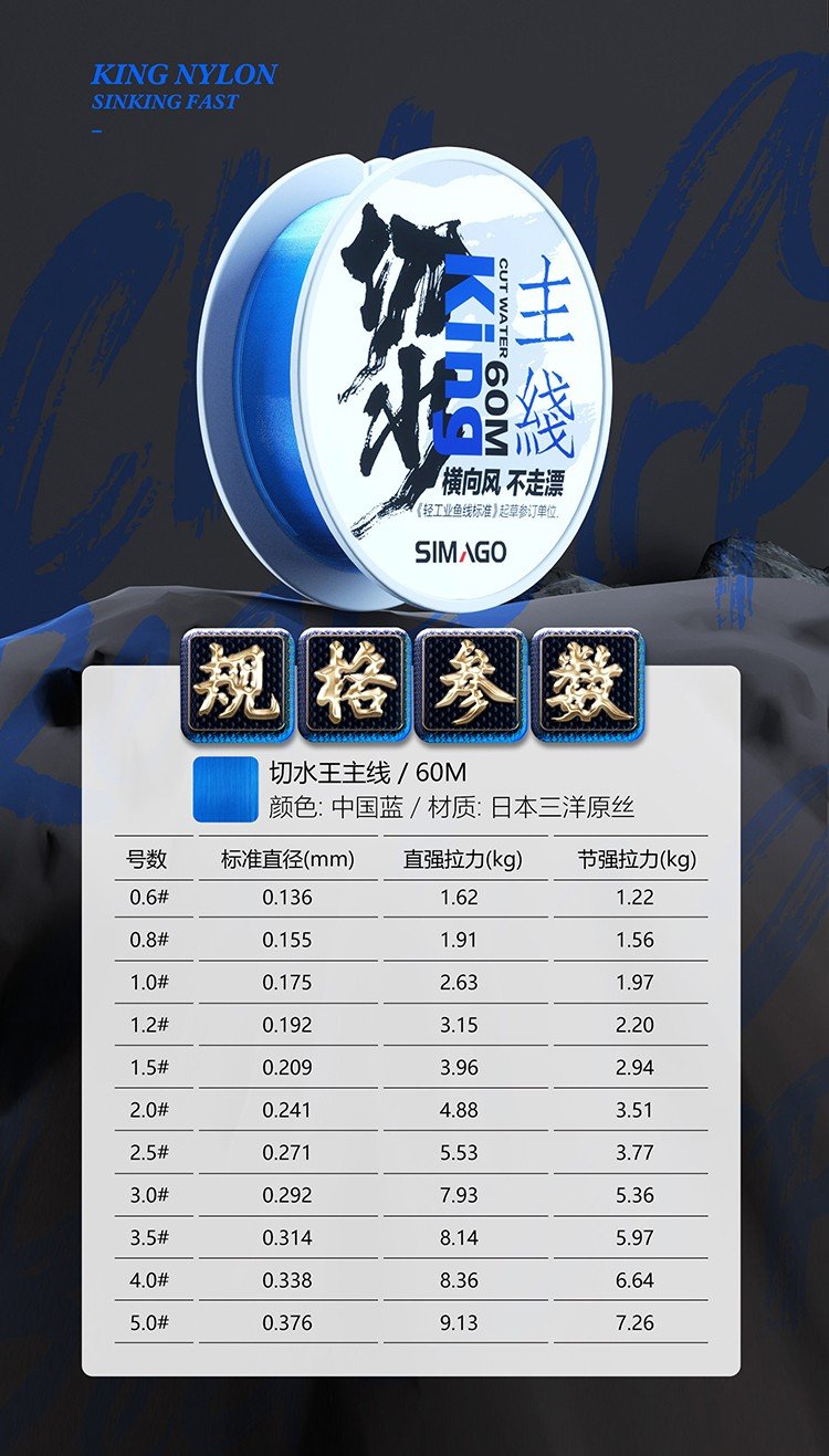SIMAGO Ximanduo cutting water main line fishing line super soft strong tensile nylon sub-line platform fishing channel system 60 meters main line No. 0.6