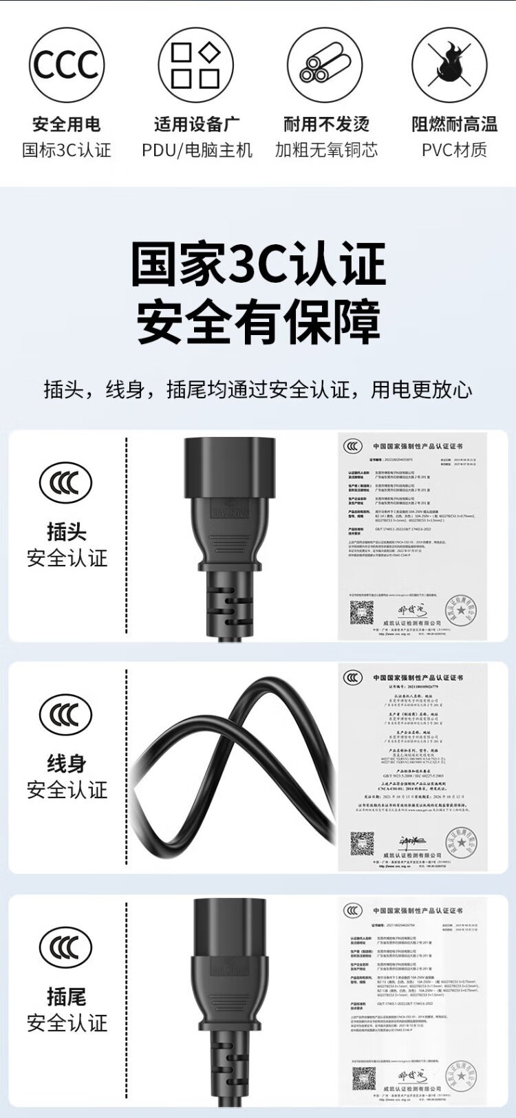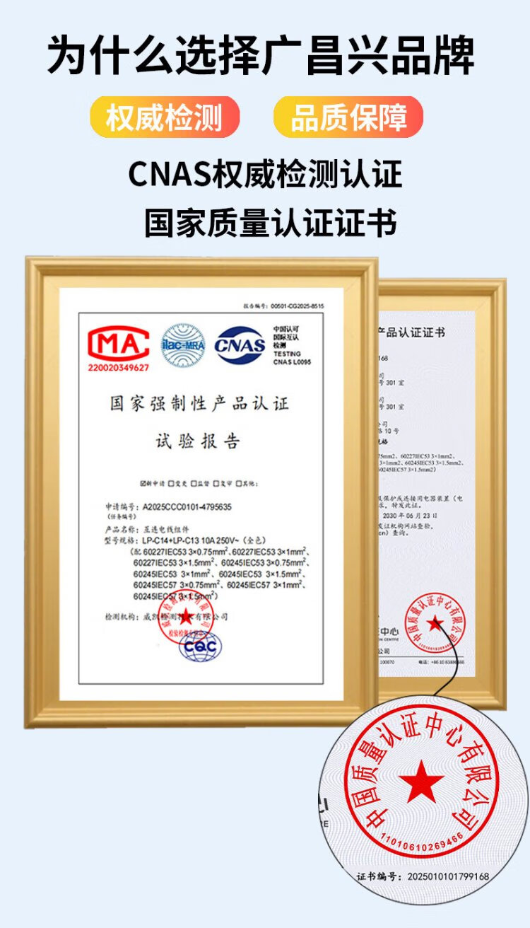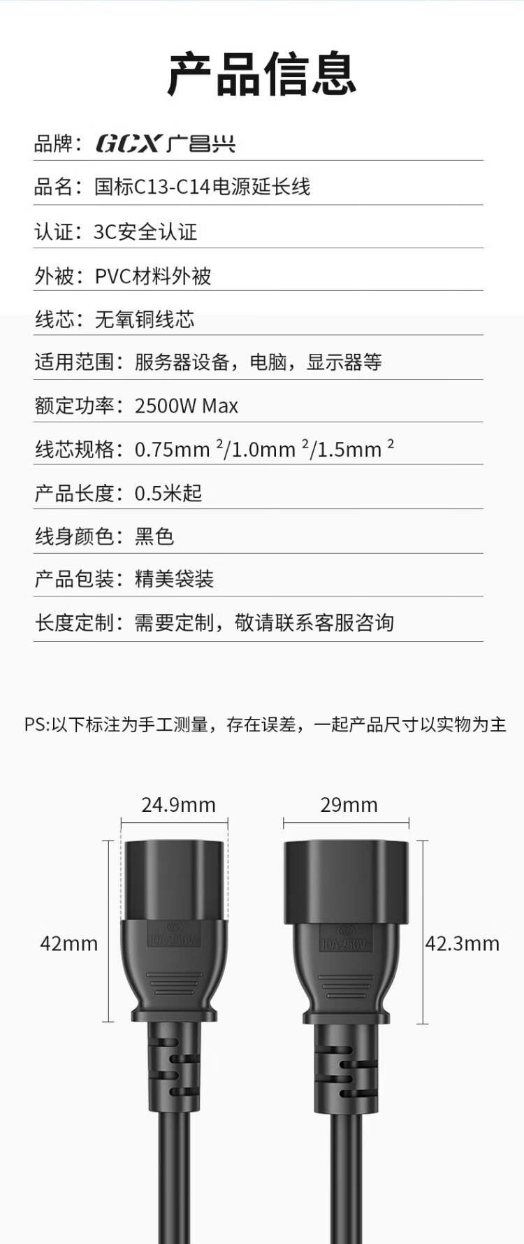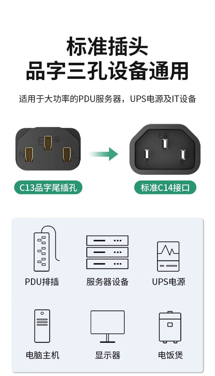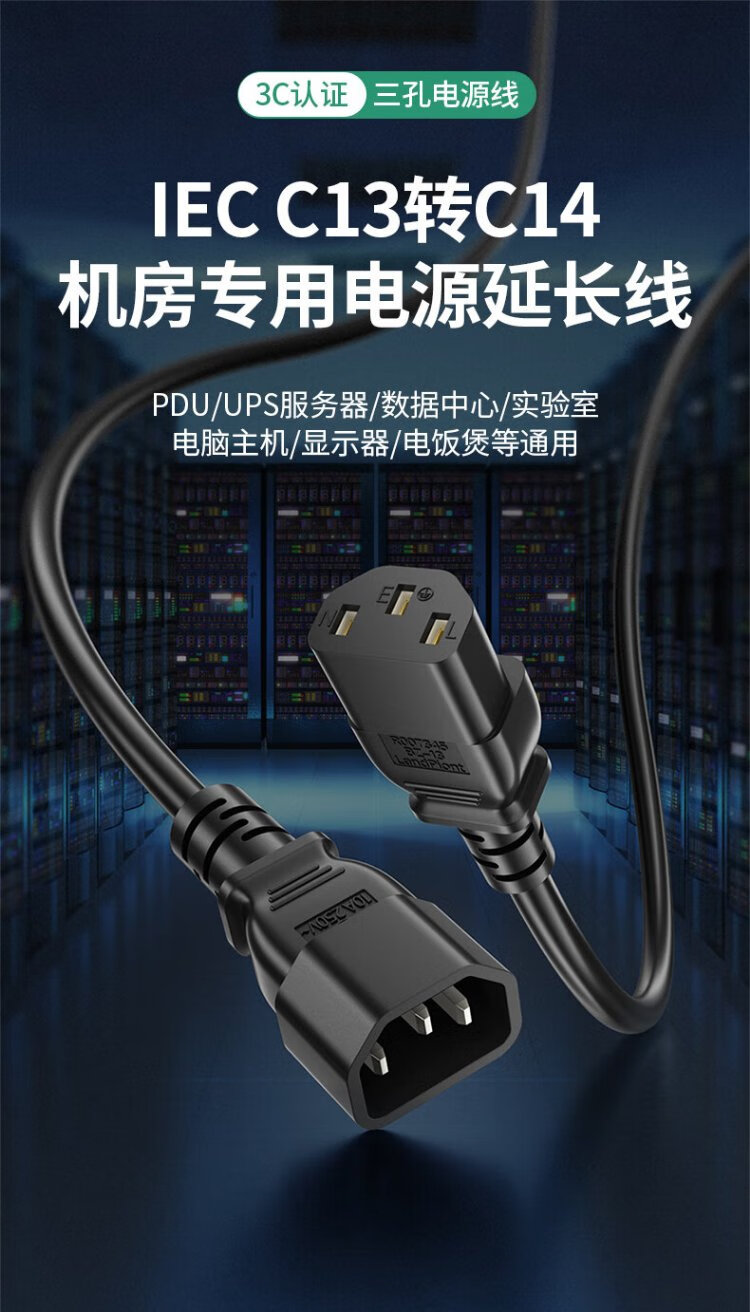 Guangchangxing (G.C.X) PDU server power cord 10a c13 to c14 3*1.5 square 1 meter - oxygen-free copper national standard 3C certified male and female three-hole extended charging UPS connection cable