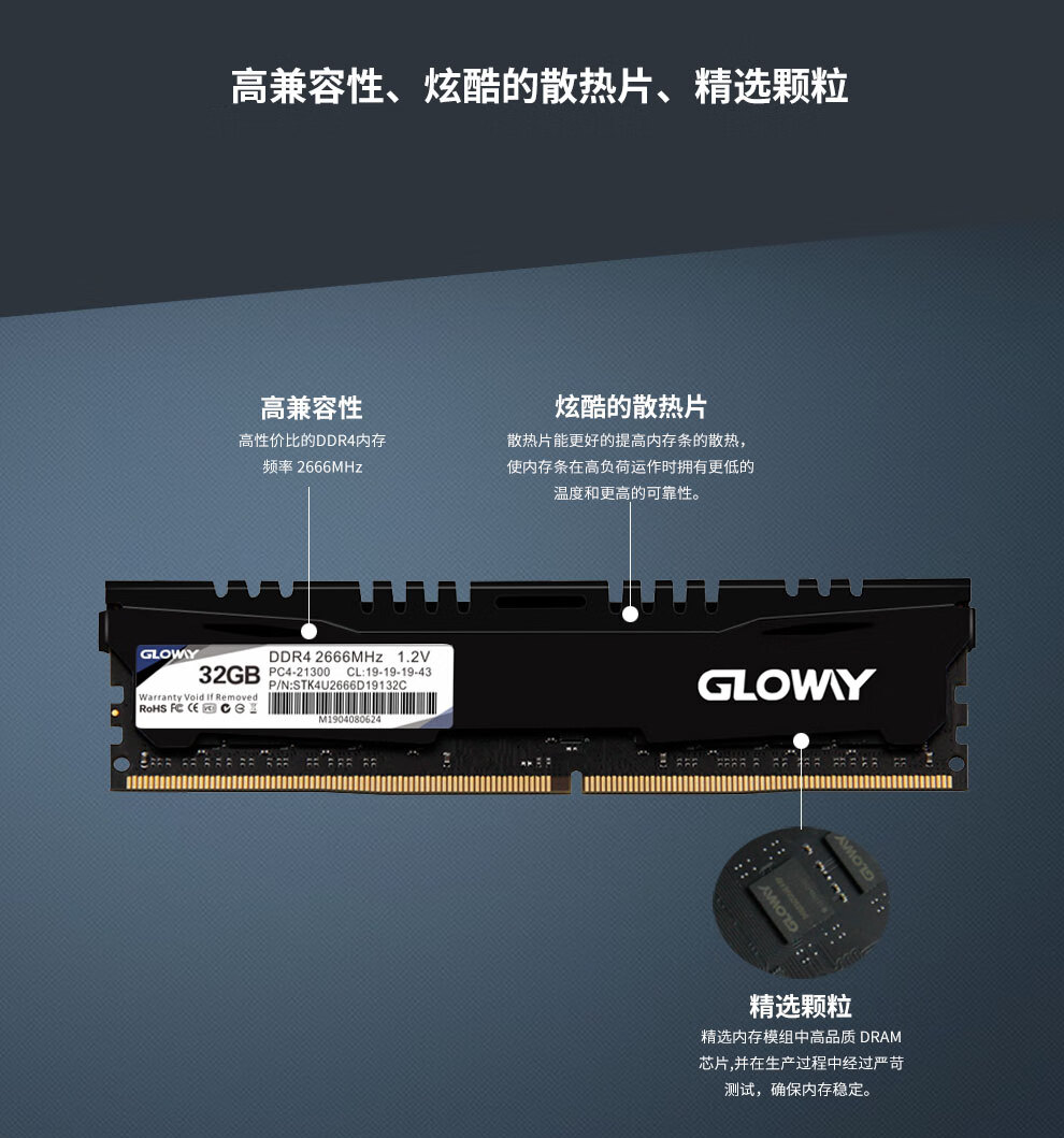 Gloway 32GB DDR4 2666 Desktop Memory Stick Vest Stick Selected Chips CL19