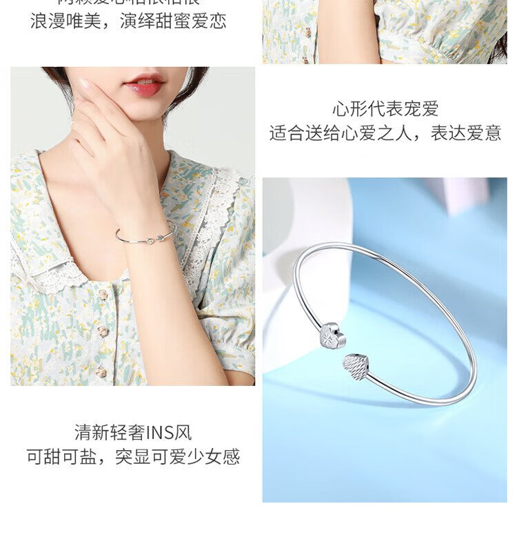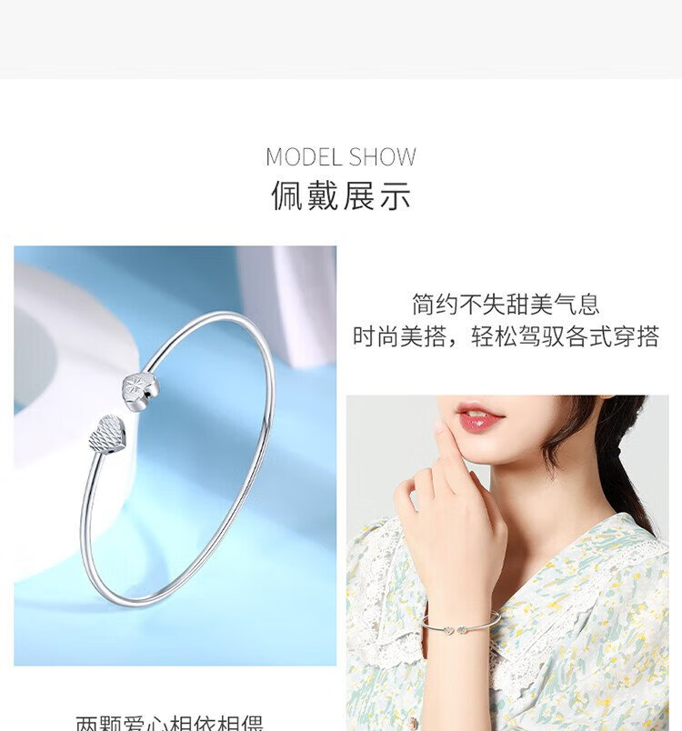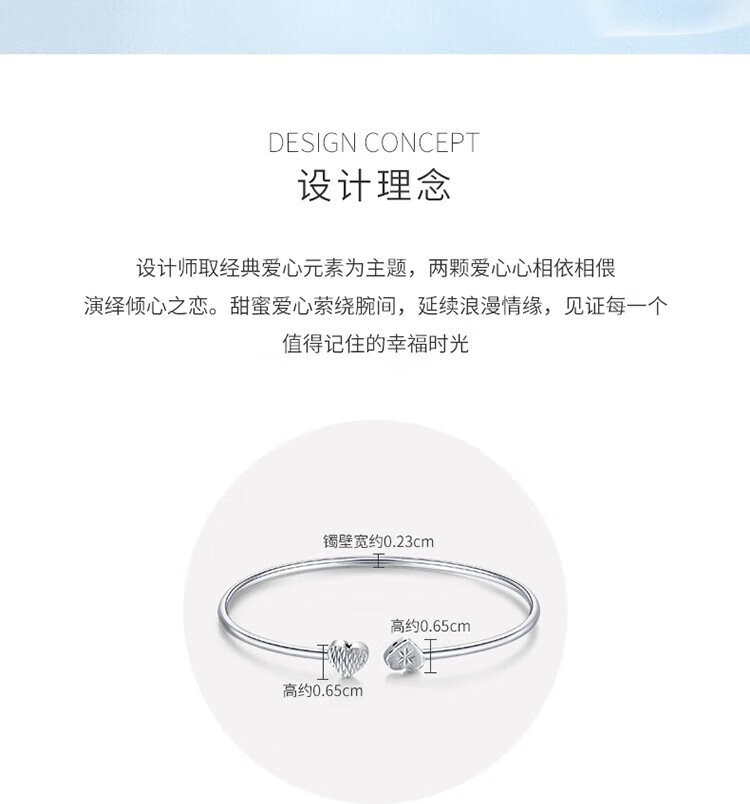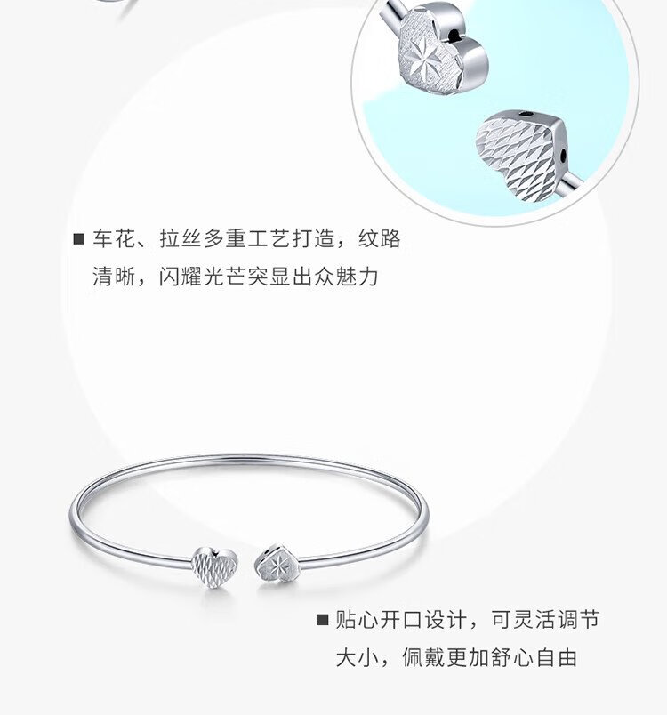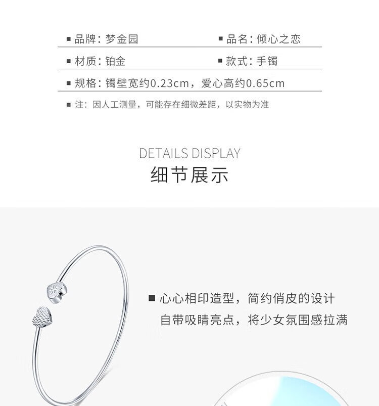 Mengjinyuan Platinum Bracelet PT950 Heart to Heart Bracelet Plain Ring Car Flower Bracelet Live as a Birthday Gift for Girlfriend and Wife