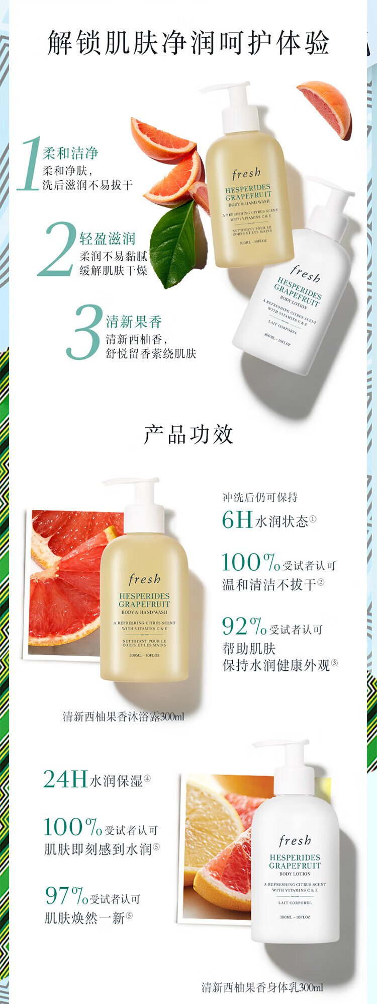 Fresh Grapefruit Care Set (Body Lotion 300ml + Shower Gel 300ml) Birthday Gift for Men and Women