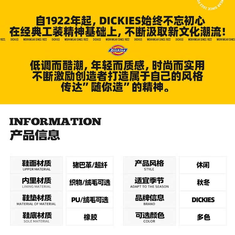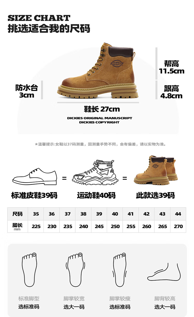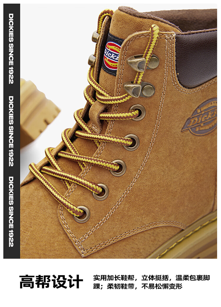 Dickies Women's Martin Boots High Top Fashion Couple Boots Versatile Work Boots Women's Earthy Yellow Women's Style-37